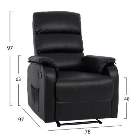 Η ΗΜ8316.01 με επένδυση από ΜΑΥΡΟ PU leather, είναι μια πολυθρόνα που αποτελεί το όνειρο για πολλούς. Οπτικά, γεμίζει τις αισθήσεις όλων με τις πλούσιες διαστάσεις και τα αναπαυτικά μαξιλάρια της. Η πλάτη είναι ψηλή ενώ το κάθισμα βαθύ και τα μπράτσα σε προκαλούν να απλώσεις τα χέρια σου επάνω στα πλούσια μαξιλάρια τους. Επιπλέον, στις 2 πλευρές υπάρχουν θήκες για πρόχειρη τοποθέτηση μικρών αντικειμένων. Και όταν γυρνάτε από την δουλειά και θέλετε να χαλαρώσετε μπροστά στην τηλεόρασή σας, ή να διαβάσετε την εφημερίδα σας, ή το αγαπημένο σας βιβλίο μπροστά στο παράθυρο, τότε ο μηχανισμός relax ρίχνει την πλάτη και σε συνδυασμό με το πτυσσόμενο υποπόδιο θα σας προσφέρει ανεπανάληπτες στιγμές χαλάρωσης.