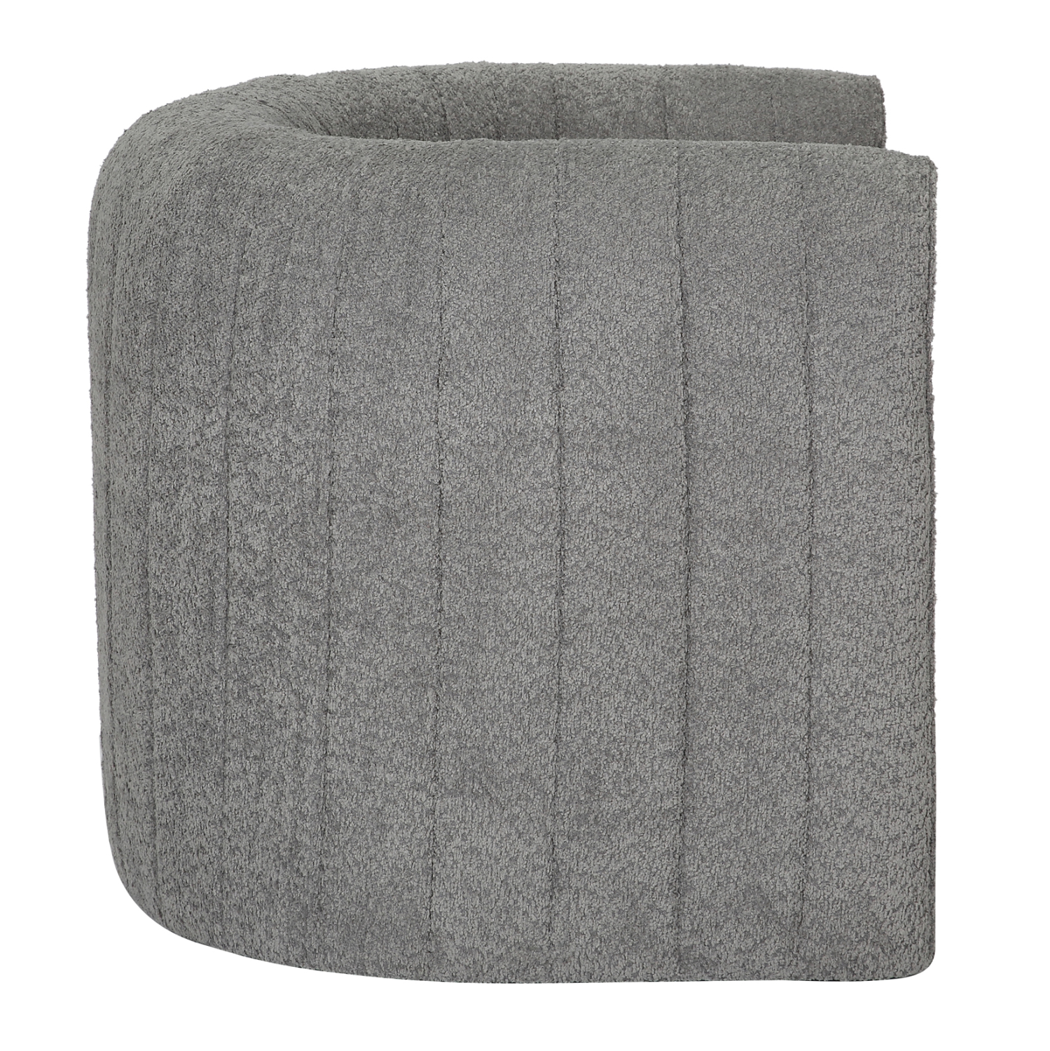 Ο σκελετός της πολυθρόνας είναι μεταλλικός με ηλεκτροστατική βαφή, ενώ ολόκληρη η επένδυση έχει γίνει με μπουκλέ ύφασμα εξαιρετικής ποιότητας και υφής. Μπουκλέ λέγεται οποιοδήποτε ύφασμα που έχει κόμπο-μπούκλα στην ύφανσή του. Κατασκευάζεται από σχεδόν όλες τις πρώτες ύλες (αν και συνήθως είναι συνθετικό) με ειδικές κλωστές με κόμπους ή πολύ στριμμένα νήματα, έτσι ώστε να έχει σγουρή επιφάνεια. Δεν τσαλακώνει και μπορεί να είναι μονόχρωμο, μελανζέ ,καρώ ή τουιντ.