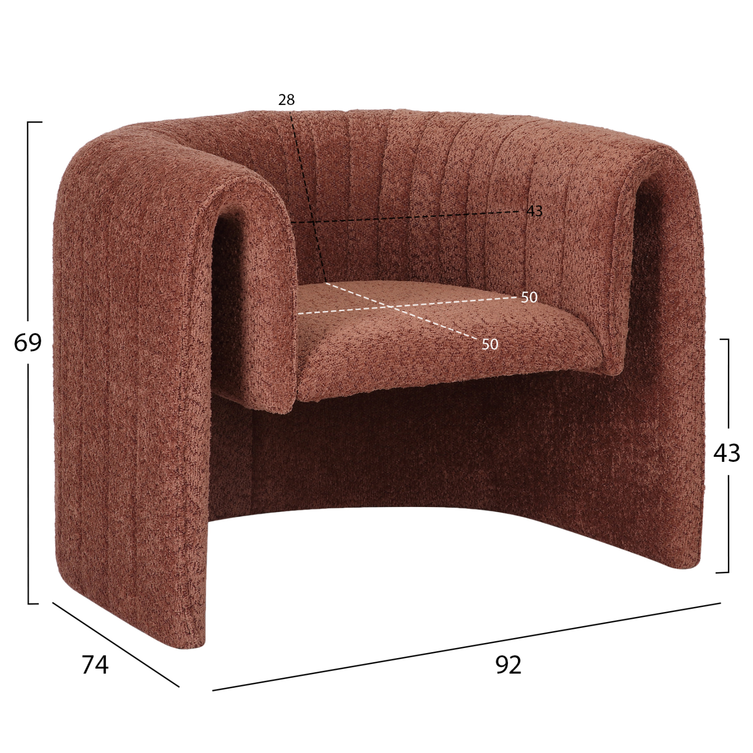 Η πολυθρόνα εσωτερικού χώρου RIKER σε ΚΕΡΑΜΙΔΙ χρώμα είναι μοντέρνα και πανέμορφη. Το χαρακτηριστικό που κάνει αυτή την πολυθρόνα να ξεχωρίζει είναι οι καμπύλες του μεταλλικού σκελετού που σχηματίζουν την ημικυκλική πλάτη με τα μπράτσα και όλη η κατασκευή φτάνει μέχρι κάτω δημιουργώντας ουσιαστικά και τα πόδια της πολυθρόνας ως φυσική συνέχεια του design. Μια πολυθρόνα που είναι σίγουρο ότι θα μαγνητίσει το ενδιαφέρον όλων.