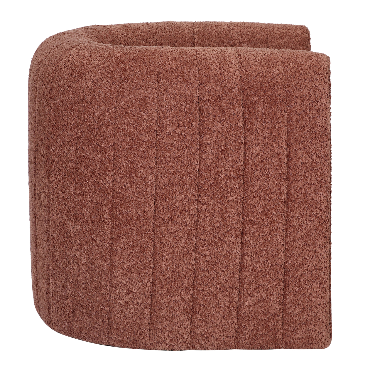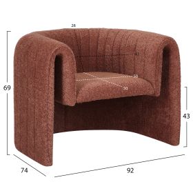 Ο σκελετός της πολυθρόνας είναι μεταλλικός με ηλεκτροστατική βαφή, ενώ ολόκληρη η επένδυση έχει γίνει με μπουκλέ ύφασμα εξαιρετικής ποιότητας και υφής. Μπουκλέ λέγεται οποιοδήποτε ύφασμα που έχει κόμπο-μπούκλα στην ύφανσή του. Κατασκευάζεται από σχεδόν όλες τις πρώτες ύλες (αν και συνήθως είναι συνθετικό) με ειδικές κλωστές με κόμπους ή πολύ στριμμένα νήματα, έτσι ώστε να έχει σγουρή επιφάνεια. Δεν τσαλακώνει και μπορεί να είναι μονόχρωμο, μελανζέ ,καρώ ή τουιντ.