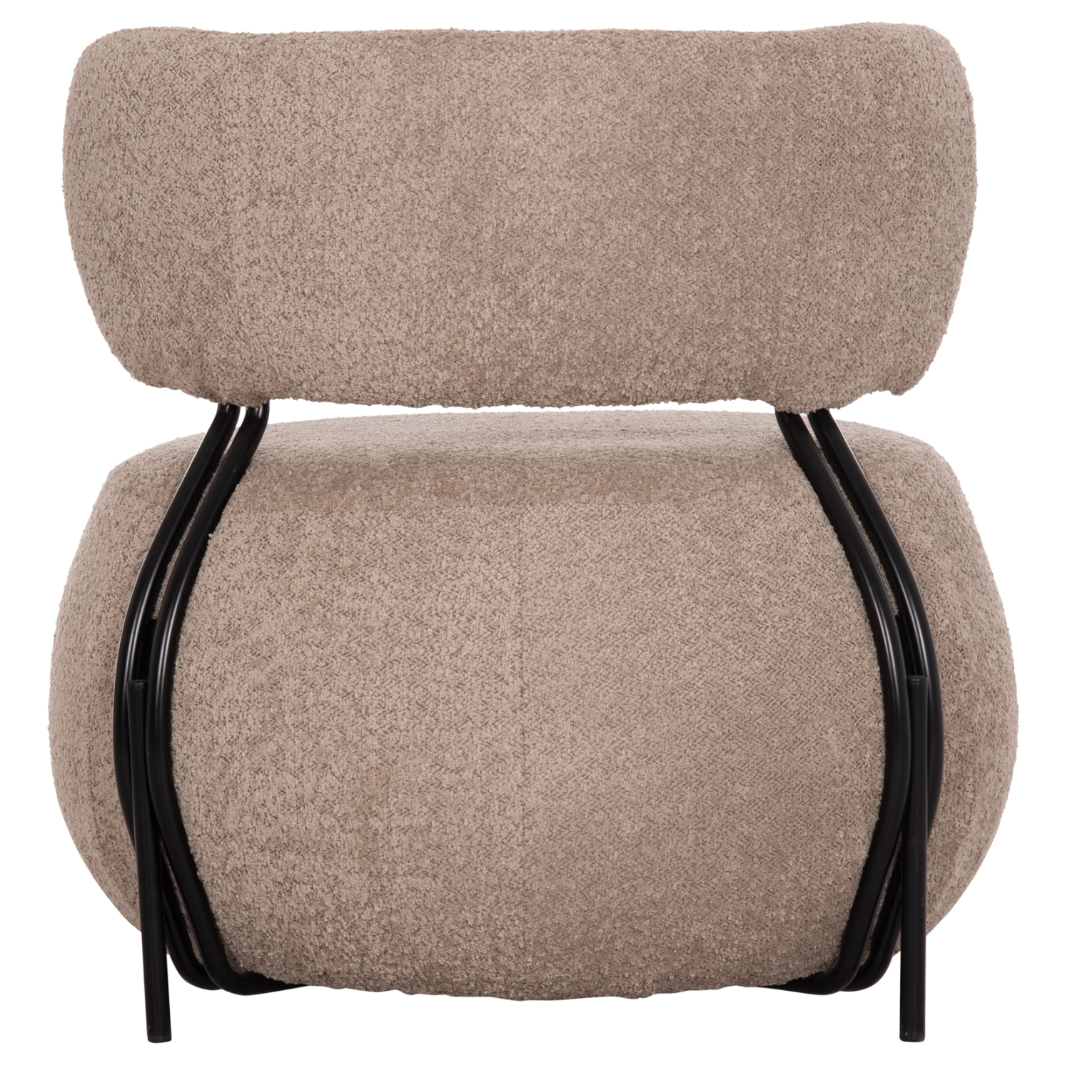 Η επένδυση της πολυθρόνας έχει γίνει εξολοκλήρου με εξαιρετικής ποιότητας ύφασμα ΜΠΟΥΚΛΕ. Μπουκλέ λέγεται οποιοδήποτε ύφασμα που έχει κόμπο-μπούκλα στην ύφανσή του . Κατασκευάζεται από σχεδόν όλες τις πρώτες ύλες (αν και συνήθως είναι συνθετικό) με ειδικές κλωστές με κόμπους ή πολύ στριμμένα νήματα, έτσι ώστε να έχει σγουρή επιφάνεια. Δεν τσαλακώνει και μπορεί να είναι μονόχρωμο, μελανζέ ,καρώ ή τουιντ.