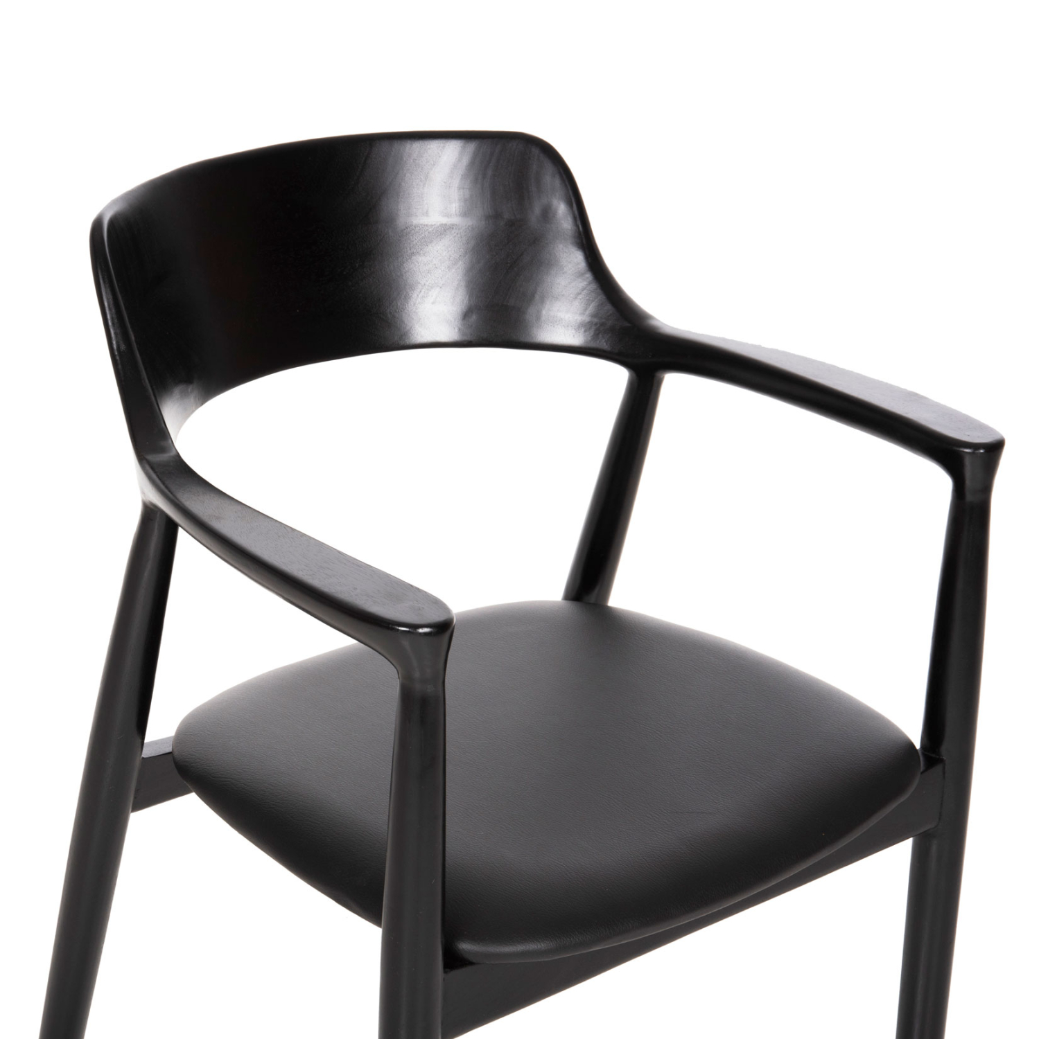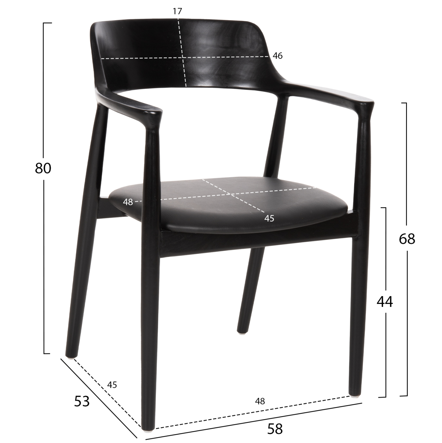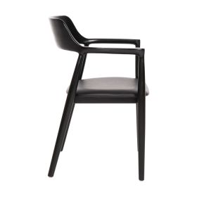 Η πολυθρόνα τραπεζαρίας εσωτερικού χώρου KINGLSEY είναι μια πολυθρόνα απαράμιλλης ομορφιάς. Ο πανέμορφος σκελετός της είναι από ποιοτικό ξύλο, ενώ το φαρδύ κάθισμα διαθέτει μαξιλαράκι με επένδυση τεχνητού δέρματος. Οι σχεδιαστικές γραμμές της πολυθρόνας είναι κομψές και με γνώμονα την άνεση του χρήστη, με χαρακτηριστικό παράδειγμα τα ψηλά μπράτσα της πολυθρόνας. Το ξύλο έχει εντυπωσιακό ΜΑΥΡΟ ΒΙΝΥΛΙΟΥ χρώμα που μαγνητίζει τα βλέμματα. Συνδυάστε την με ένα ταιριαστό τραπέζι και δημιουργήστε την εντυπωσιακή τραπεζαρία που πάντα θέλατε.