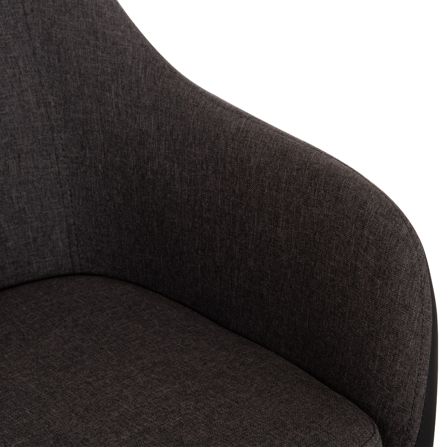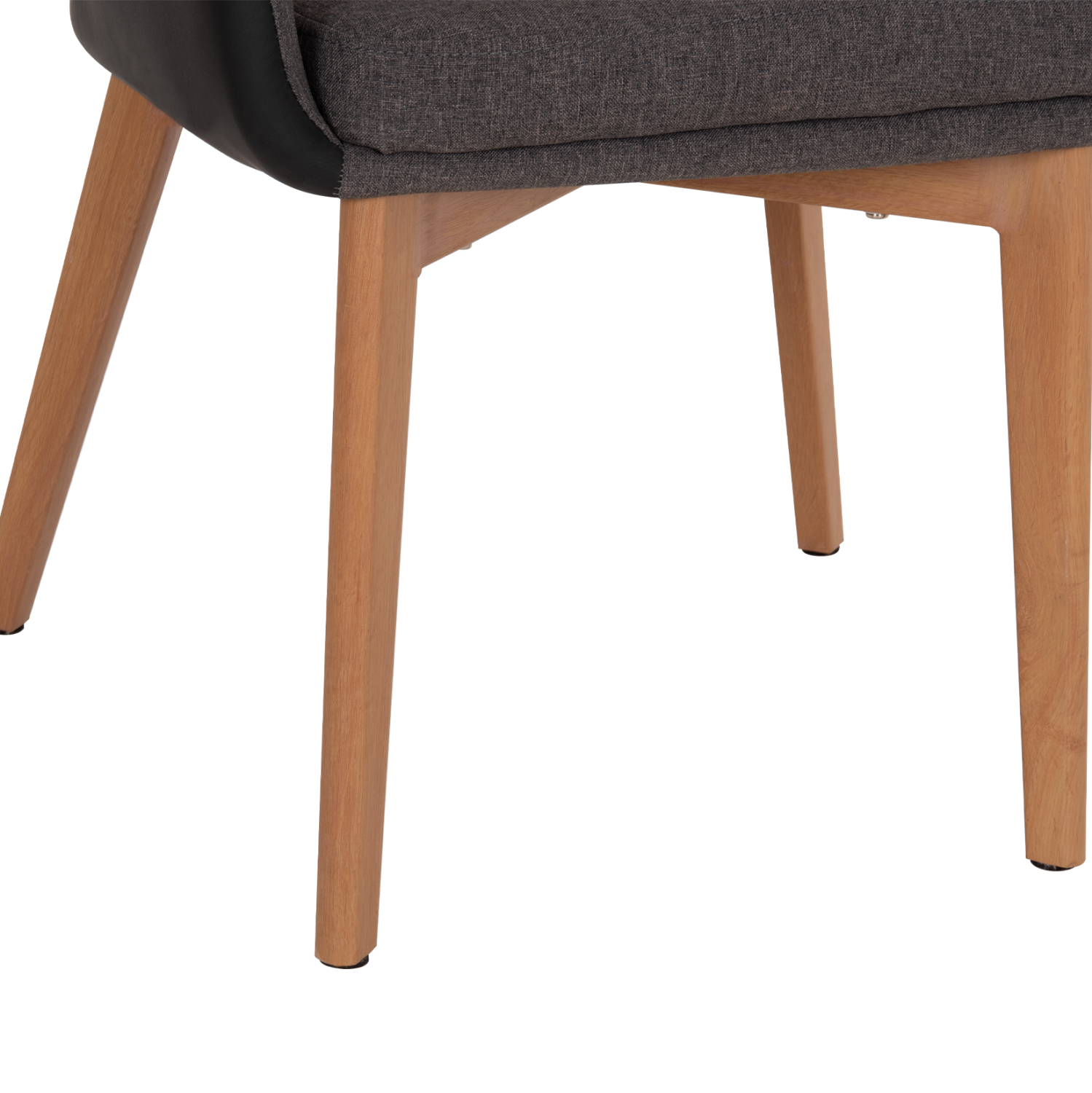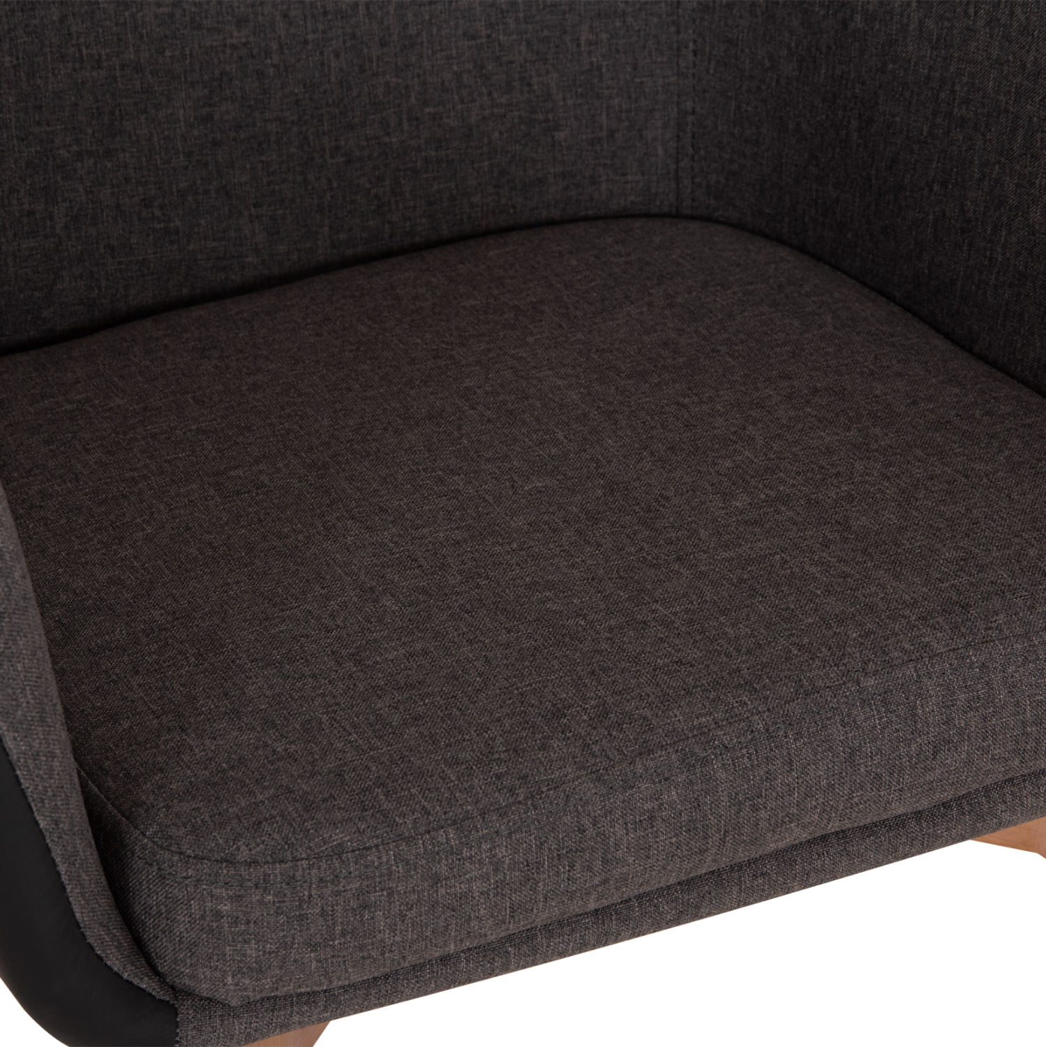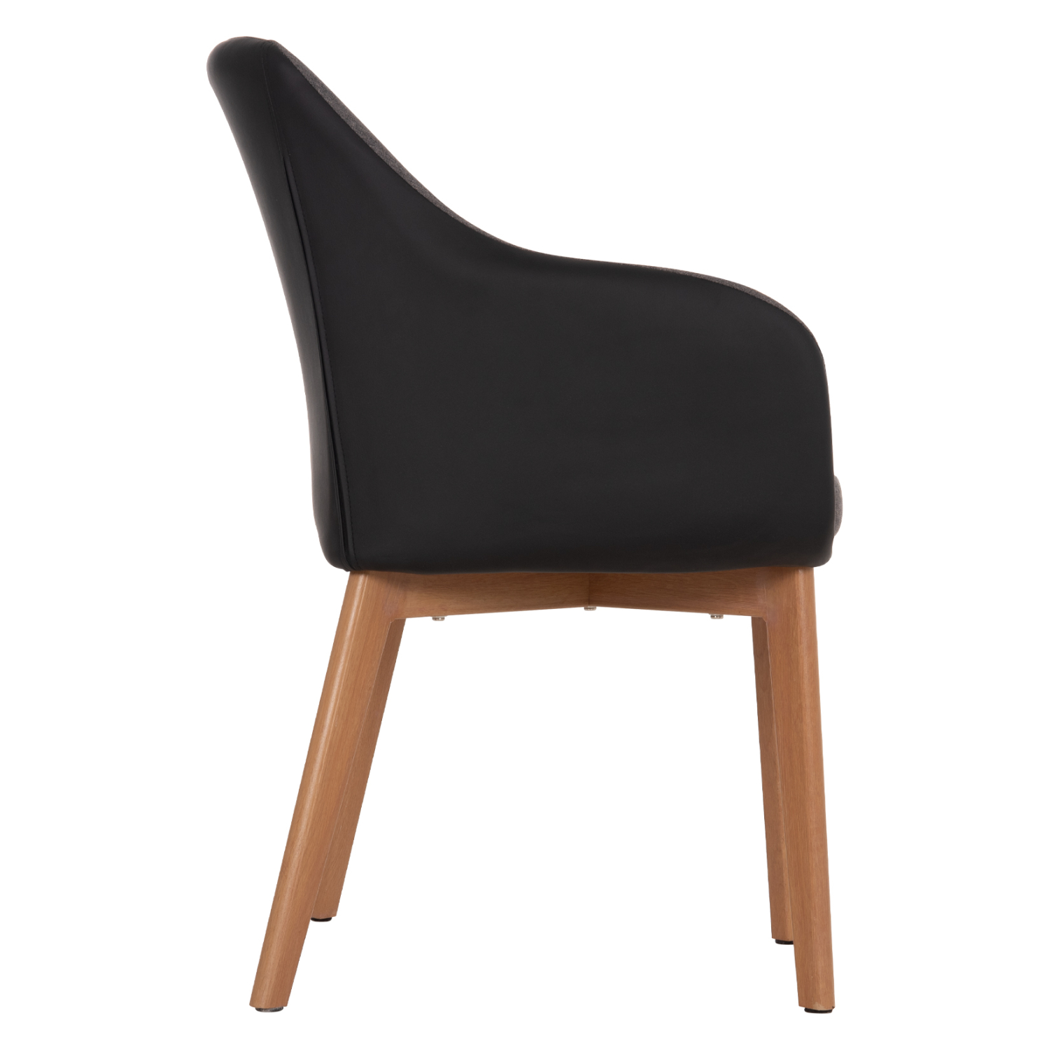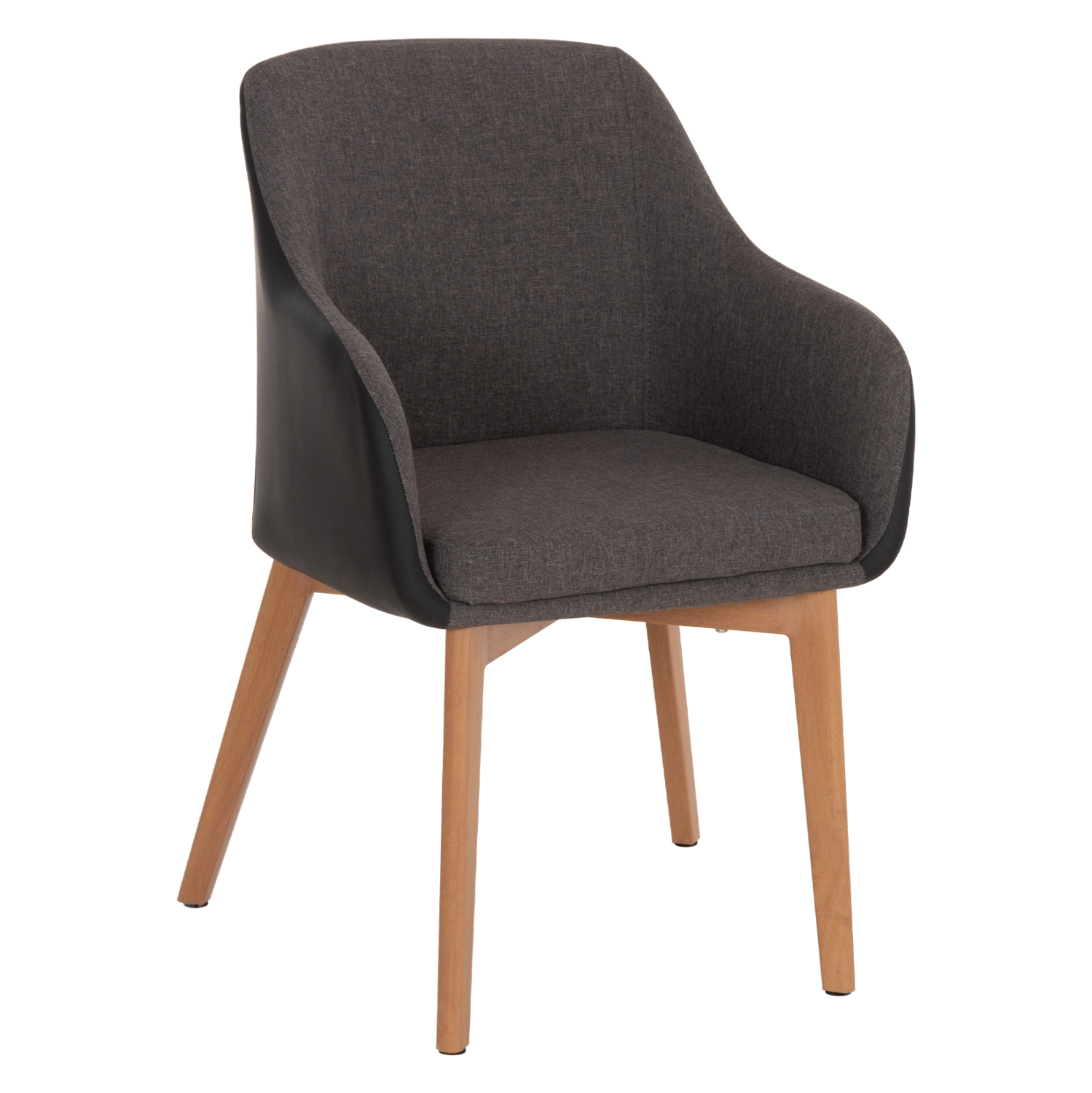 Πολυθρόνα BRISTOL με μπράτσα, σε σκούρο γκρι ύφασμα και επένδυση με τεχνόδερμα σε μαύρο χρώμα. Τα πόδια είναι μεταλλικά, βαμμένα έτσι ώστε να αποδίδουν την όψη του ξύλου.