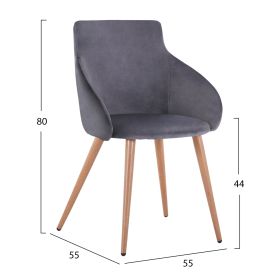 Πολυθρονάκι IVYμε μπράτσα επενδυμένο με βελούδο σε γκρι απόχρωση. Τα πόδια είναι μεταλλικά, βαμμένα έτσι ώστε να αποδίδουν την όψη του ξύλου.