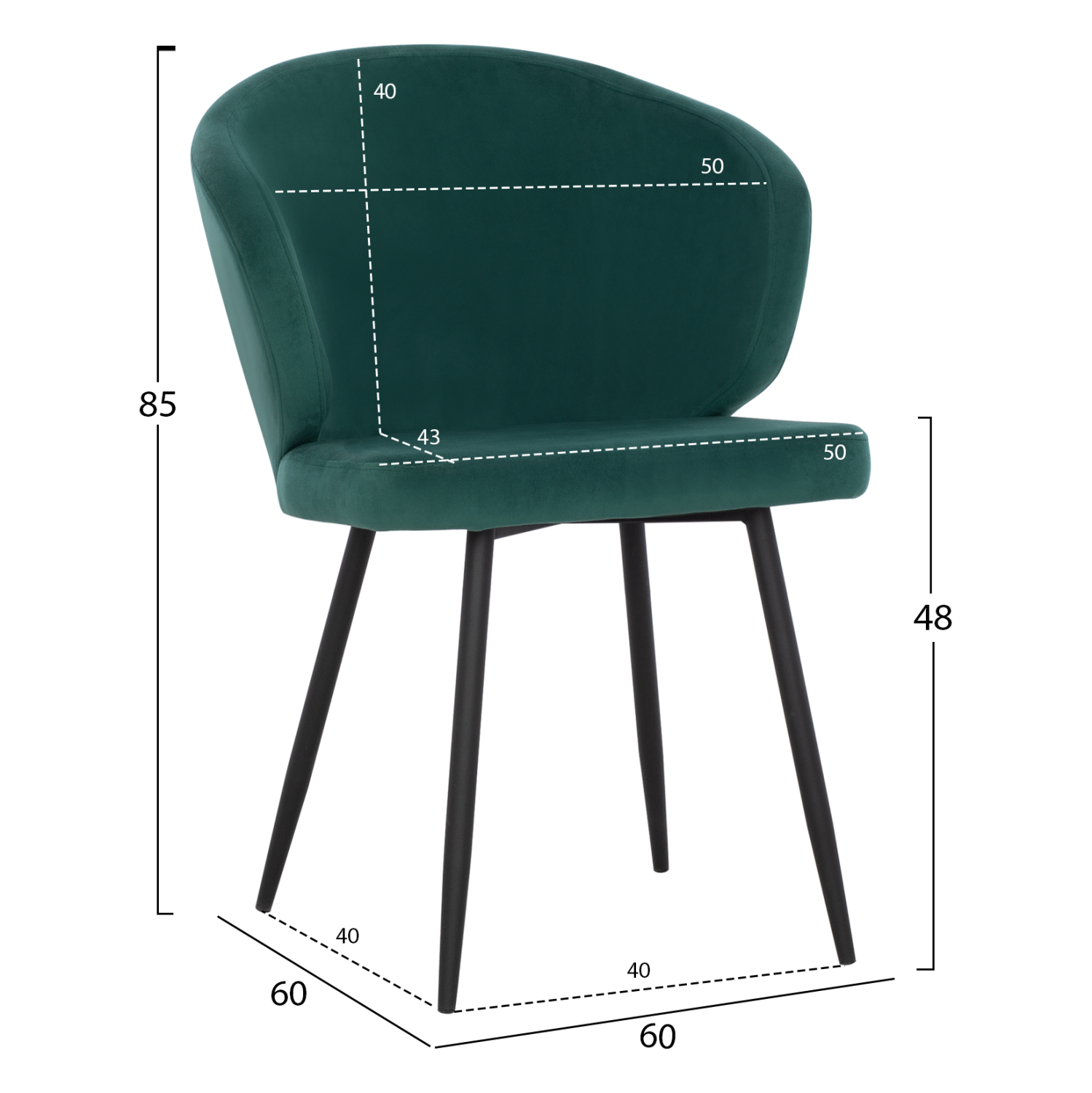 Πολυθρονάκι από βελούδινο ύφασμα σε σε κυπαρισσί απόχρωση, με μεταλλικό σκελετό σε μαύρη απόχρωση 60x60x85 εκ.
