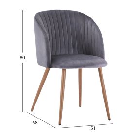 Πολυθρονάκι LEAH με μπράτσα επενδυμένο με βελούδο σε γκρι απόχρωση. Τα πόδια είναι μεταλλικά, βαμμένα έτσι ώστε να αποδίδουν την όψη του ξύλου.