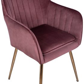 Η πολυθρόνα SAWYER είναι επενδυμένη με ύφασμα βελούδο σε απόχρωση σάπιου μήλου με μεταλλικό σκελετό σε χρυσή απόχρωση.
