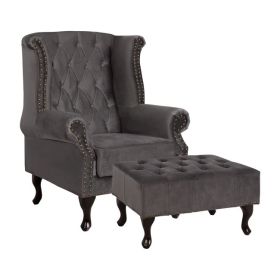 Ταμπουρέ-υποπόδιο τύπου chesterfield EMMA από βελούδο σε γκρι απόχρωση