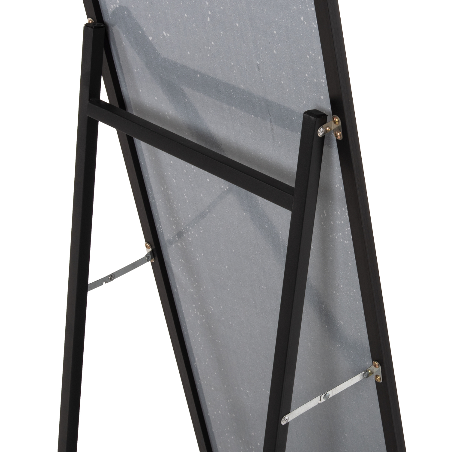 Ο JOELY είναι ένας καθρέφτης δαπέδου με ΜΑΥΡΟ σκελετό, κομψός και σε άκρως ικανοποιητική διάσταση. Ένα χρήσιμο «εργαλείο» για κάθε υπνοδωμάτιο που θα ταιριάξει με την διακόσμηση σας, είτε είναι κλασική είτε πιο μοντέρνα. Η στήριξη γίνεται με μια πτυσσόμενη αλουμινένια διάταξη. Ο καθρέφτης στο επάνω μέρος του έχει αψιδωτό σχεδιασμό.