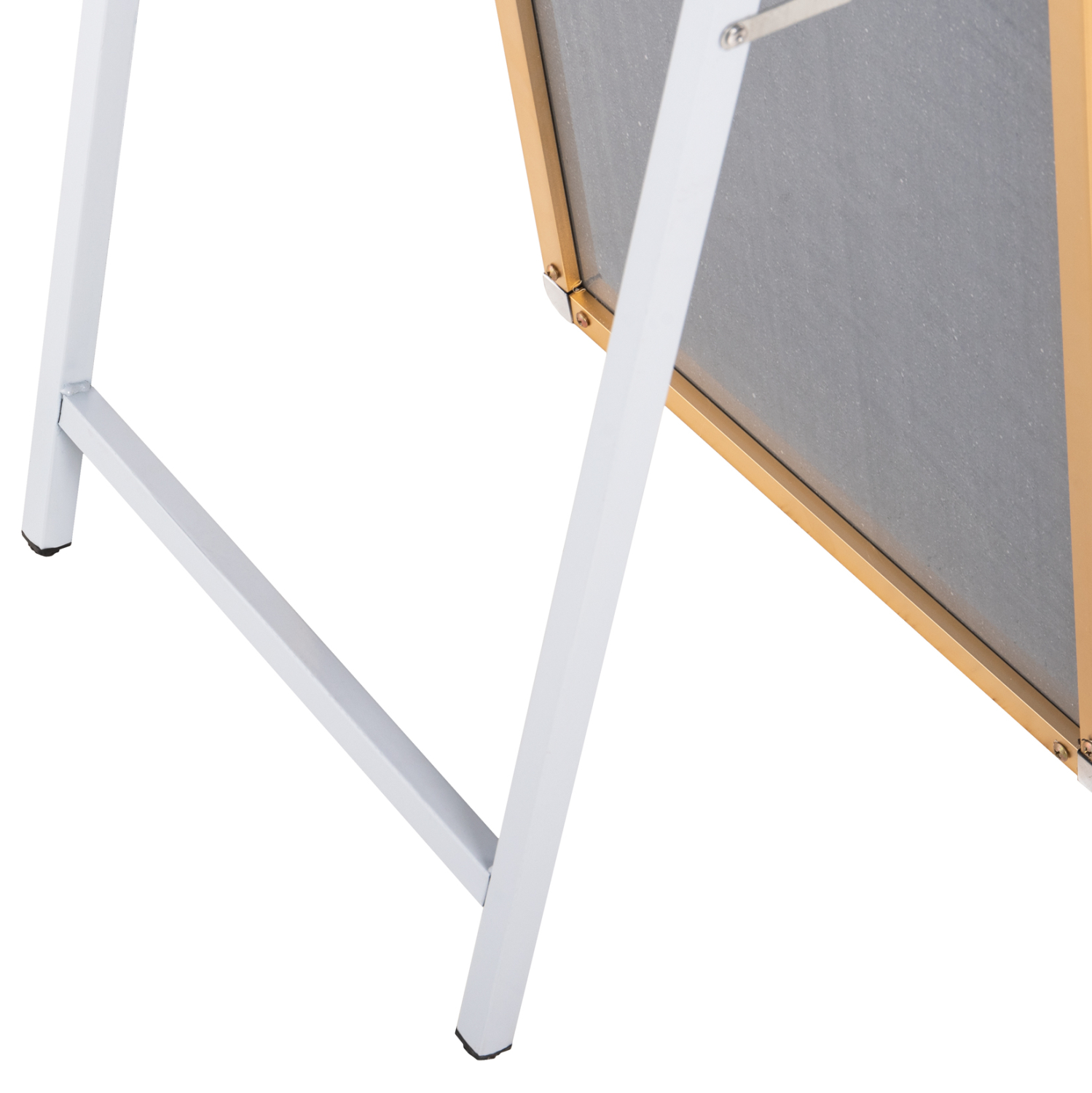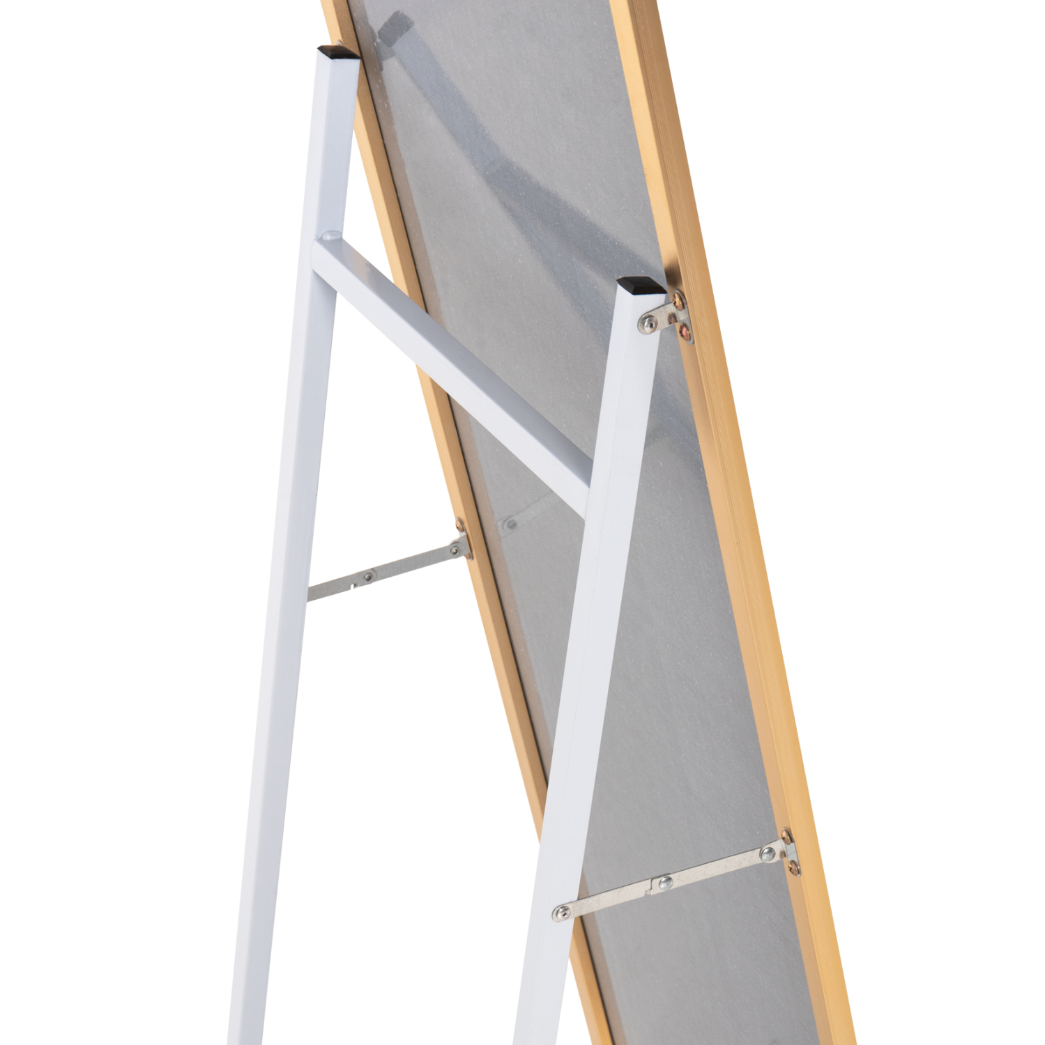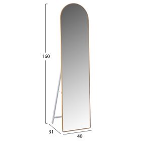 Ο JOELY είναι ένας καθρέφτης δαπέδου σε ΧΡΥΣΗ απόχρωση, κομψός και σε άκρως ικανοποιητική διάσταση. Ένα χρήσιμο «εργαλείο» για κάθε υπνοδωμάτιο που θα ταιριάξει με την διακόσμηση σας, είτε είναι κλασική είτε πιο μοντέρνα. Η στήριξη γίνεται με μια πτυσσόμενη αλουμινένια διάταξη. Ο καθρέφτης στο επάνω μέρος του έχει αψιδωτό σχεδιασμό.