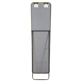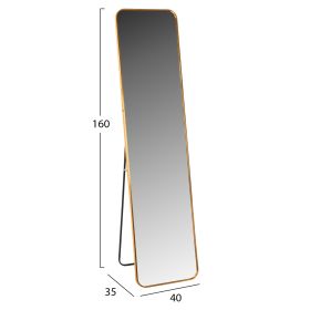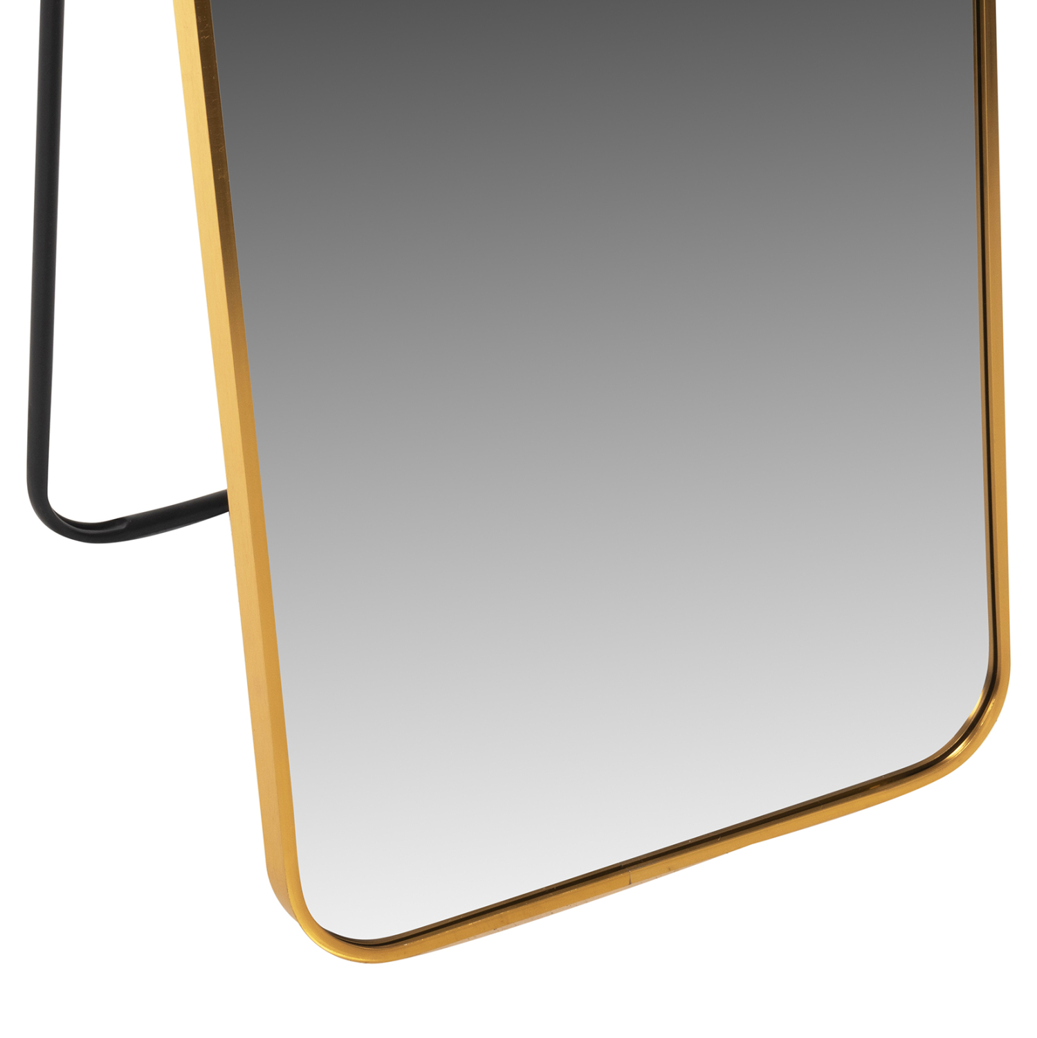 Ο ΒOELY είναι ένας καθρέφτης δαπέδου με ΧΡΥΣΟ σκελετό, κομψός και σε άκρως ικανοποιητική διάσταση. Ένα χρήσιμο «εργαλείο» για κάθε δωμάτιο που θα ταιριάξει με την διακόσμηση σας, είτε είναι κλασική είτε πιο μοντέρνα. Η στήριξη γίνεται με μια πτυσσόμενη αλουμινένια διάταξη. Ο καθρέφτης είναι ορθογώνιος με στρογγυλεμένες γωνίες και «πατάει» όμορφα στο δάπεδο.