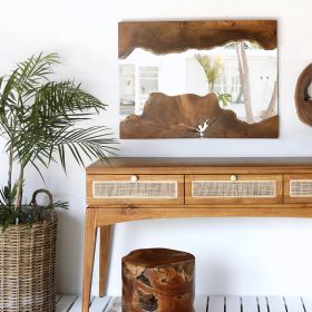 Πέρα από τον καθρέπτη, η υπόλοιπη κατασκευή έχει γίνει από μασίφ ξύλο ΤΕΑΚ. Όταν αναφερόμαστε σε μασίφ, εννοούμε τα ξύλα που κατασκευάζονται ολοκληρωτικά από τον κορμό δέντρου. Το μασίφ είναι η πιο ακριβή επιλογή σε είδος ξύλου αλλά ξεχωρίζει για την διαχρονική αισθητική του.