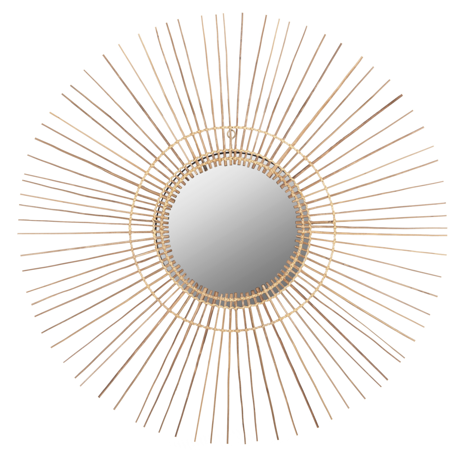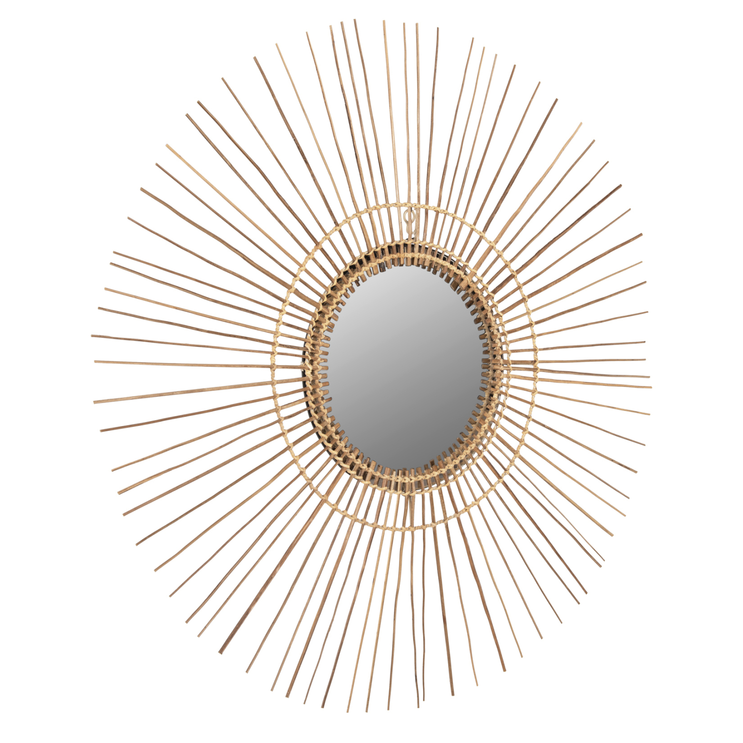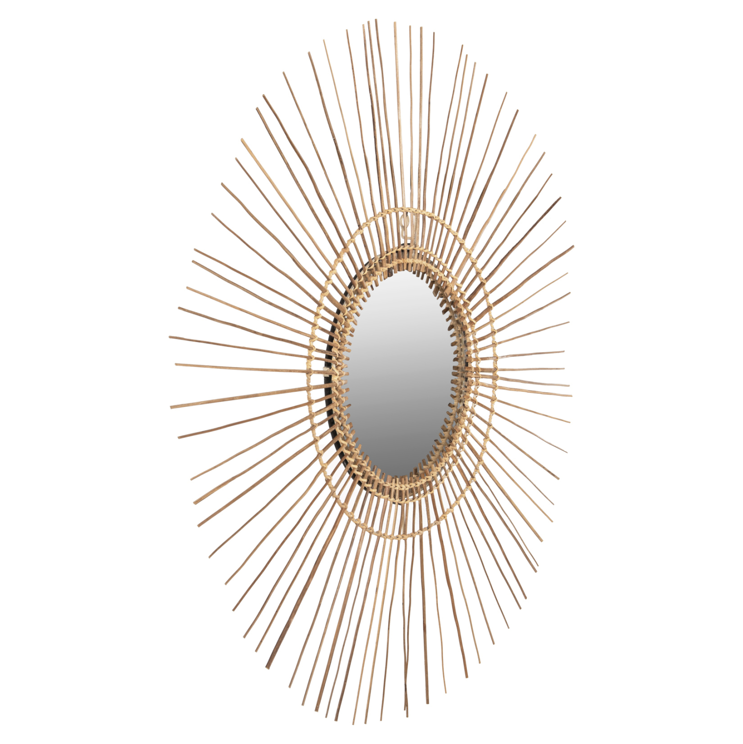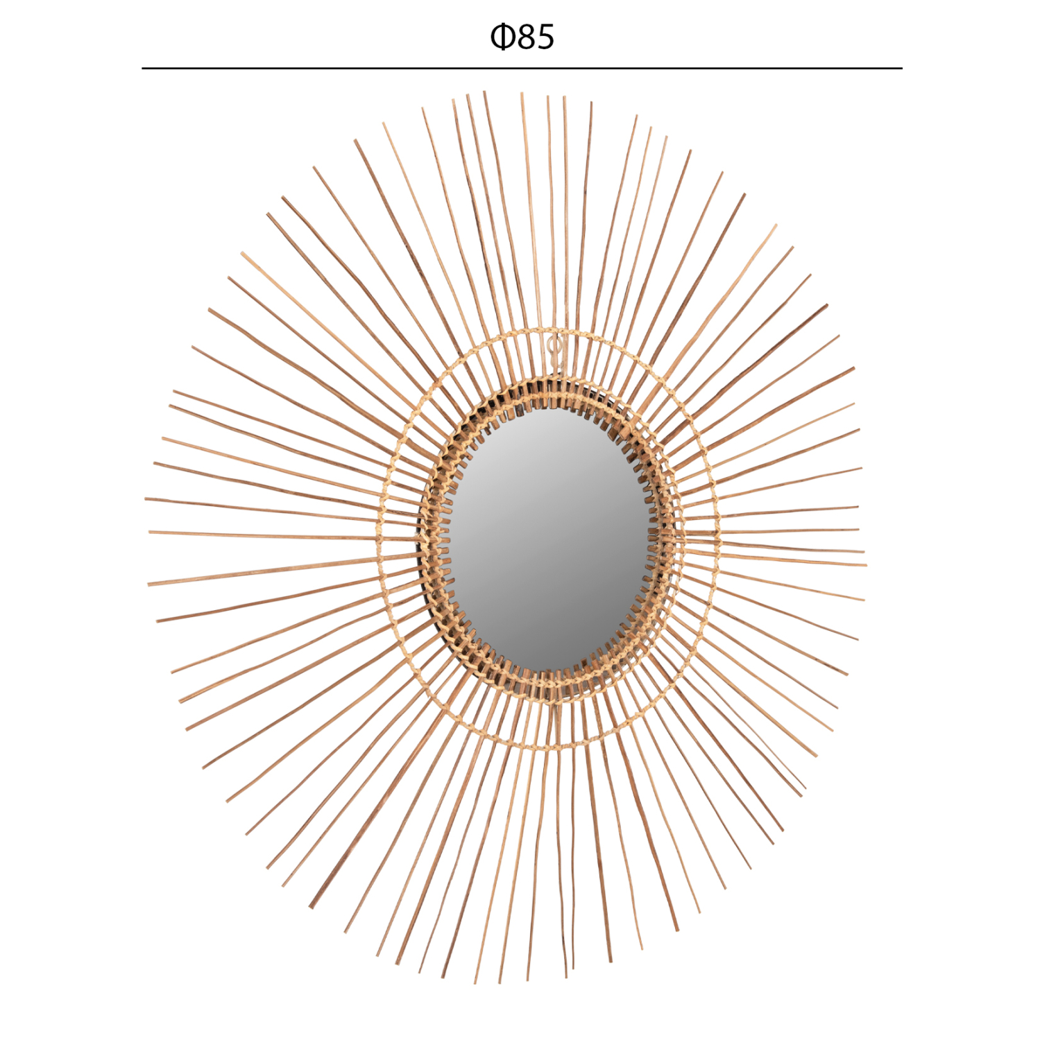 O καθρέπτης ΗΜ7733 για επαγγελματική χρήση, είναι πραγματικά ένα εντυπωσιακό κομμάτι στην διακόσμηση του χώρου σας! Το design του είναι μοναδικό με την συμμετρική κυκλική διάταξη των sticks από κοκοφοίνικα, τα οποία στο κέντρο τους «φιλοξενούν» τον καθρέπτη. Τα ξύλα είναι στο φυσικό τους χρώμα και οι διαστάσεις όλης της κατασκευής είναι ικανοποιητικές.