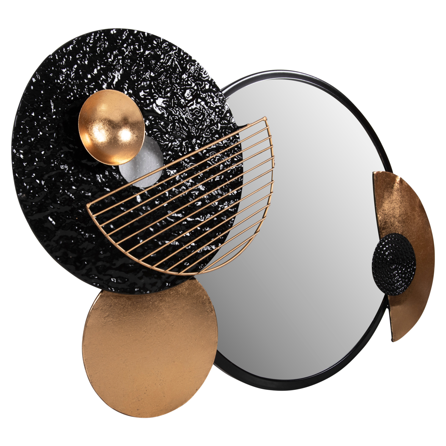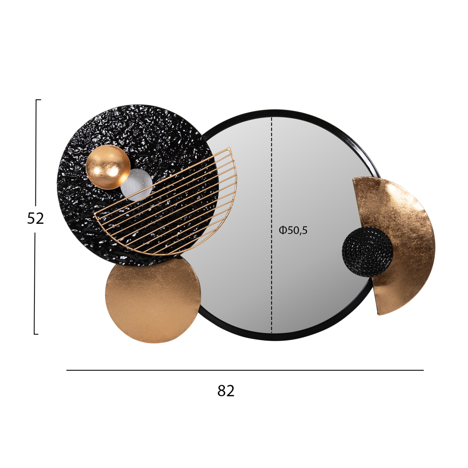 O καθρέπτης αυτός είναι πραγματικά ένα όμορφο κομμάτι στην διακόσμηση του σπιτιού σας! Πρόκειται για έναν στρογγυλό καθρέπτη σε αποχρώσεις ΜΑΥΡΟ-ΧΡΥΣΟ σε μεταλλικό πλαίσιο με επιπλέον μεταλλικά σχήματα, πράγμα που τον καθιστά και διακοσμητικό τοίχου. Γενικά, ο καθρέπτης είναι ένα από τα αναγκαία αντικείμενα για ένα σπίτι, αλλά είναι ιδανικός και για ξενοδοχεία, Airbnb, ή χώρους εστίασης ως διακοσμητικό στοιχείο!