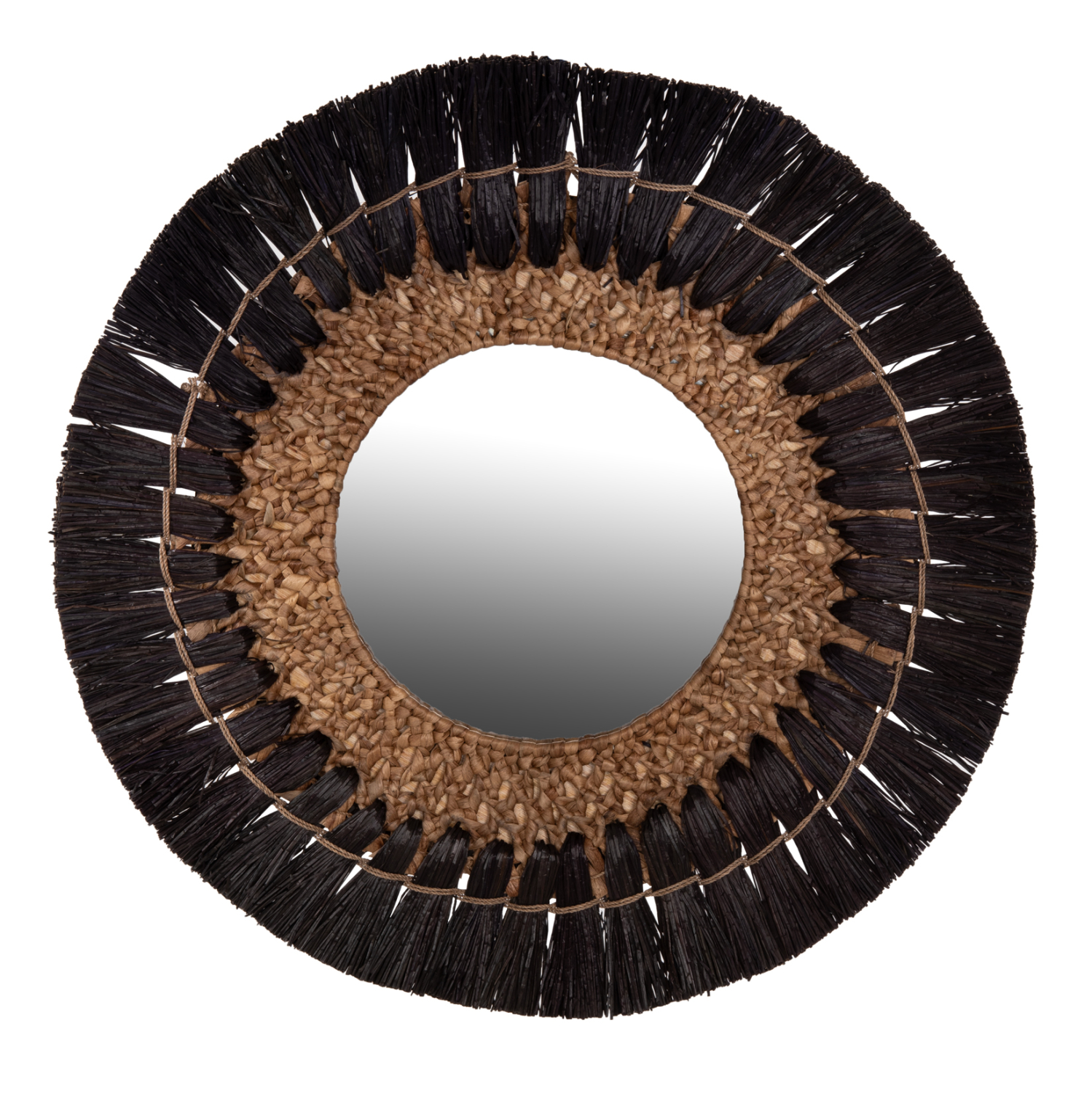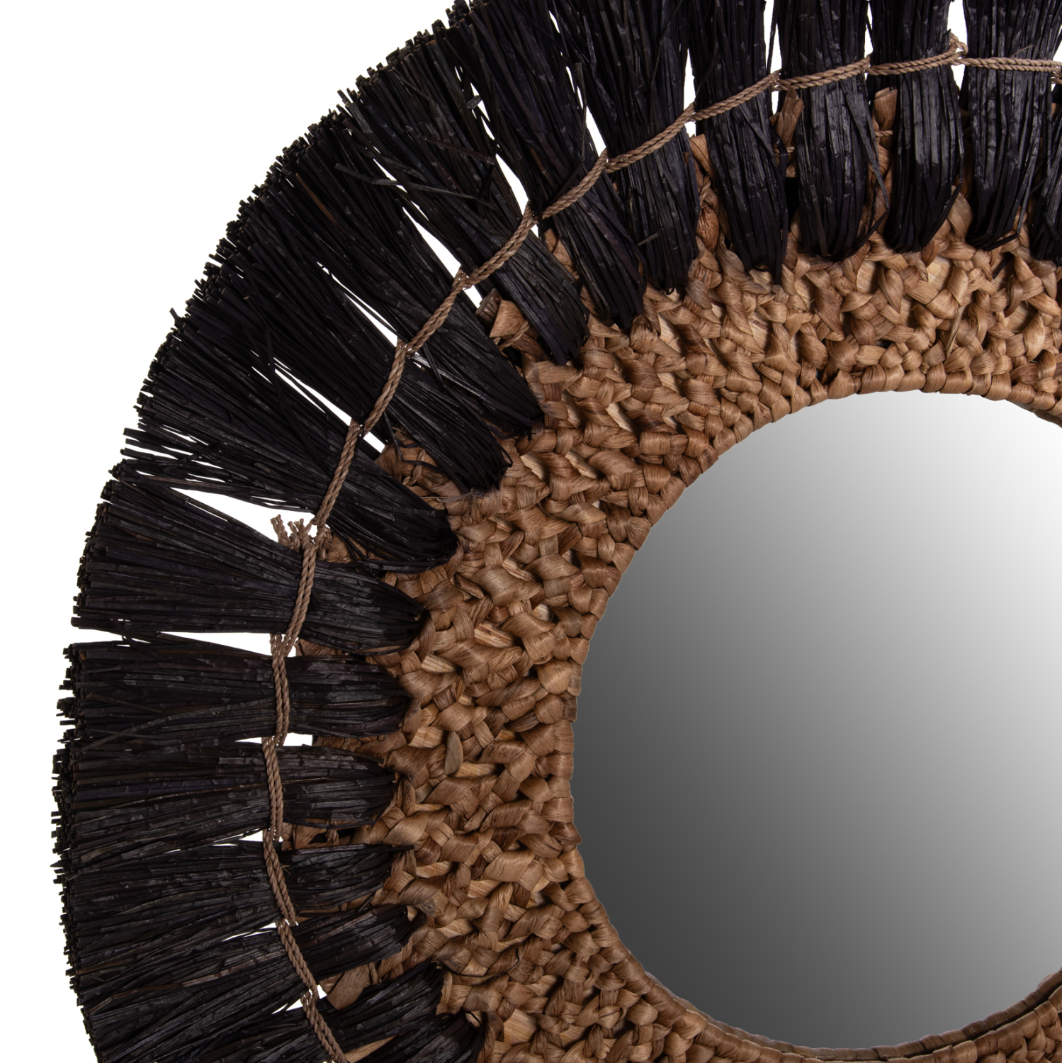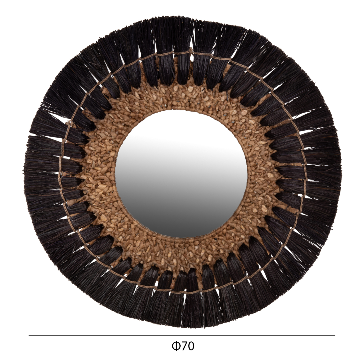 O καθρέπτης ΗΜ7832, είναι πραγματικά ένα εντυπωσιακό κομμάτι στην διακόσμηση του χώρου σας! Το design του είναι όμορφο με πλαίσιο από το χόρτο Mendong, το οποίο στο κέντρο του «φιλοξενεί» τον καθρέπτη, ενώ είναι σε ΜΑΥΡΟ ΚΑΙ ΦΥΣΙΚΟ χρώμα. Το χαρακτηριστικό είναι ότι ο καθρέφτης είναι μικρός και αποτελεί κυρίως διακοσμητικό στοιχείο.
