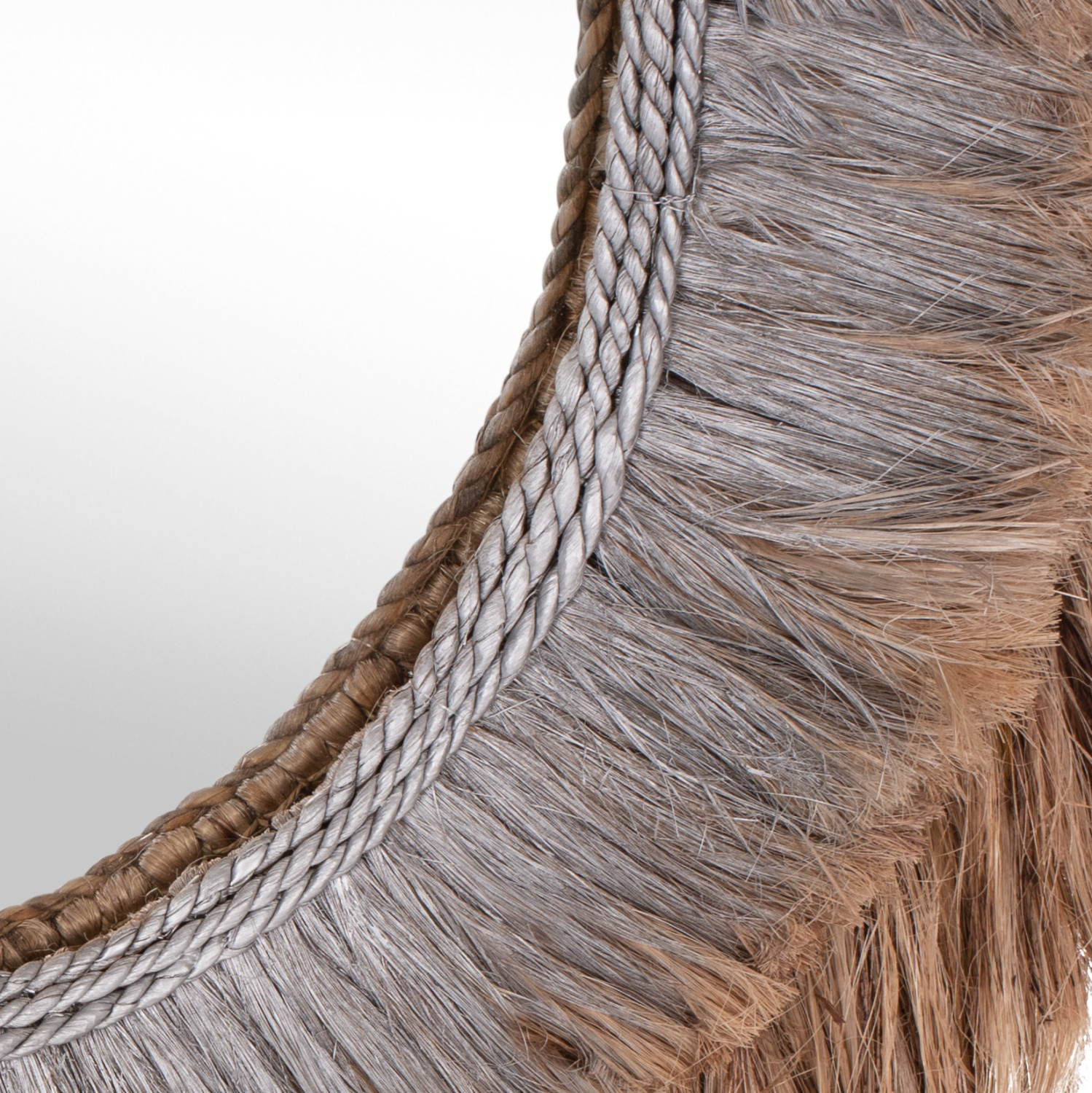 O καθρέπτης ΗΜ7738 σε οβάλ σχήμα είναι πραγματικά ένα εντυπωσιακό κομμάτι στην διακόσμηση του χώρου σας! Το design του είναι όμορφο με πλαίσιο από 2 στρώσεις με ίνες κάνναβης Μανίλας σε φυσικό και ασημί χρώμα, το οποίο στο κέντρο του «φιλοξενεί» τον μεγάλο καθρέπτη. Ένας καθρέπτης τοίχου κυρίως διακοσμητικός που προσφέρει ένα εστιακό σημείο στον χώρο σας σε πολύ ιδιαίτερο στυλ.