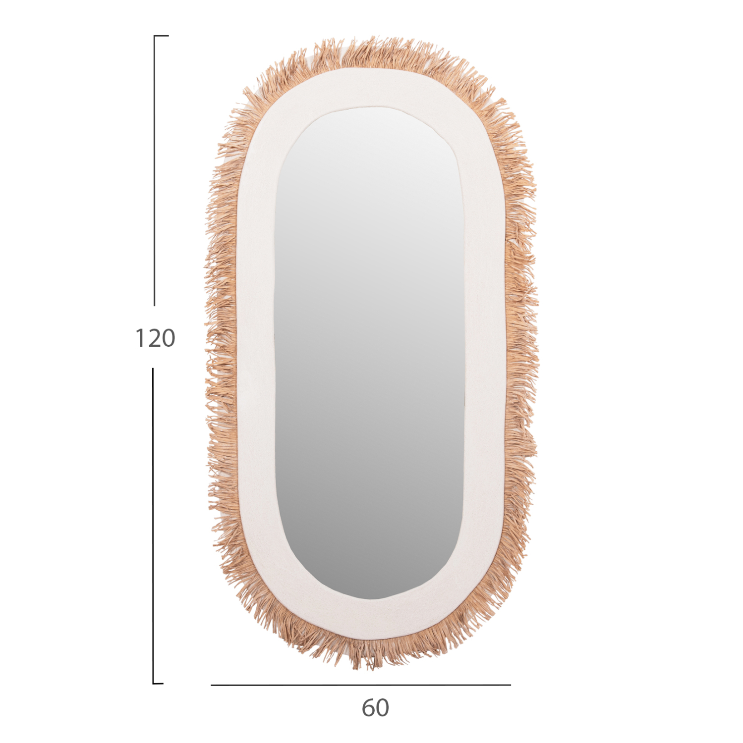 Ο καθρέπτης SANTORINI είναι ένας χειροποίητος καθρέφτης τοίχου με ΥΠΟΛΕΥΚΟ σκελετό σε οβάλ σχήμα, με ΜΠΕΖ ακρυλικό grass ως περιμετρική διακόσμηση. Ένα χρήσιμο «εργαλείο» για οποιοδήποτε δωμάτιο χρειάζεστε έναν καθρέπτη! Ιδανικός για να συμπληρώσει με τον καλύτερο τρόπο διακόσμηση "νησιώτικου" στυλ!