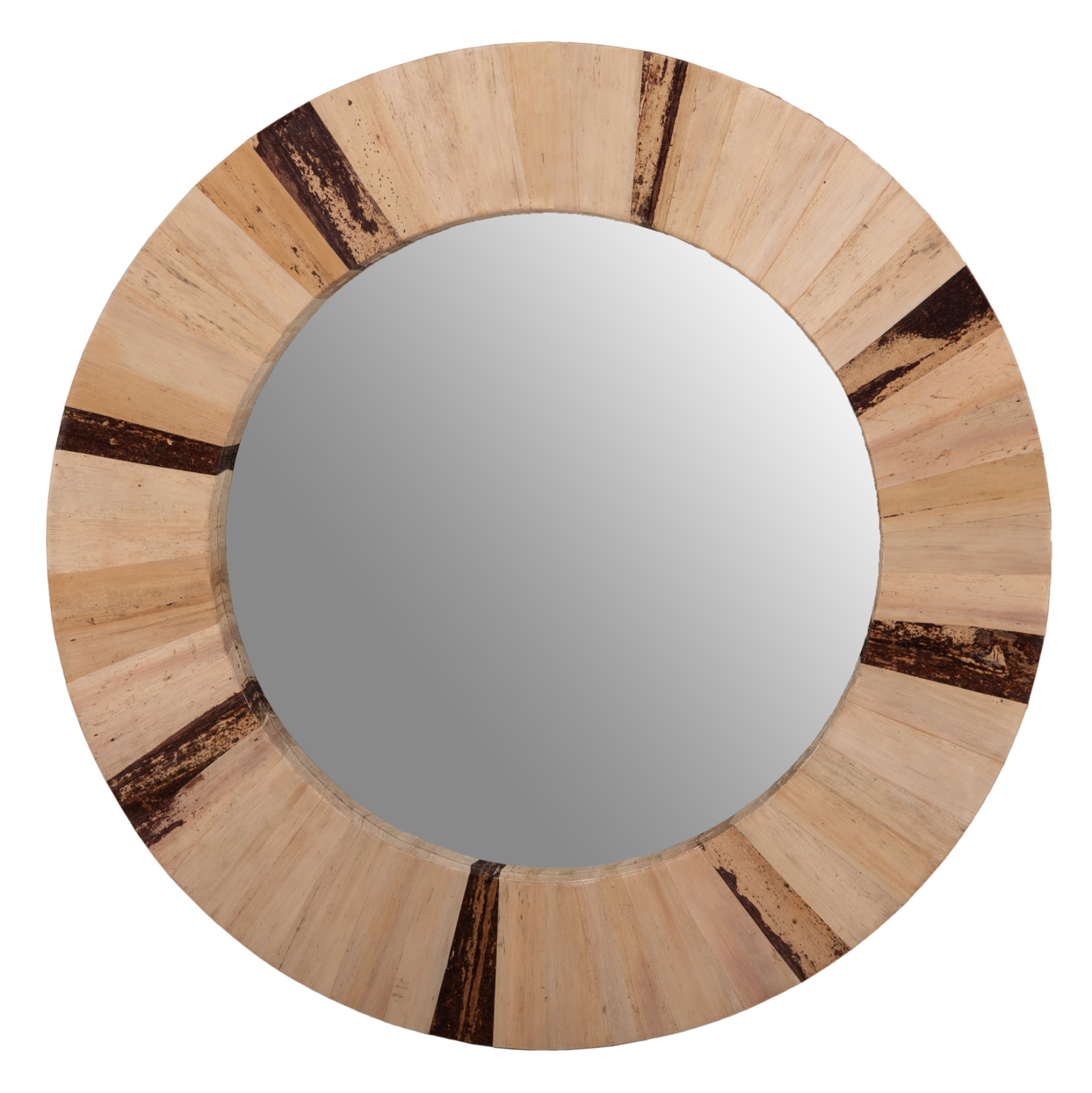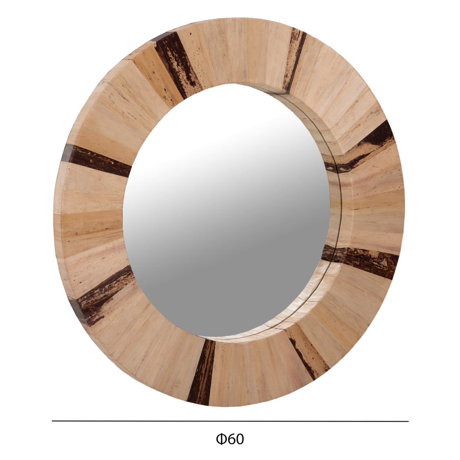 O καθρέπτης ΗΜ7837 από την νέα γκάμα των προϊόντων μας, είναι πραγματικά ένα εντυπωσιακό κομμάτι στην διακόσμηση του χώρου σας! Το design του είναι μοναδικό με το αριστοτεχνικά κατασκευασμένο στρογγυλό πλαίσιο από αποξηραμένες ίνες φύλλων φοίνικα, τα οποία δίνουν πλέον μια ξυλώδη αίσθηση. Οι ίνες (τα φύλλα) είναι στο φυσικό τους χρώμα και οι διαστάσεις όλης της κατασκευής είναι ικανοποιητικές.