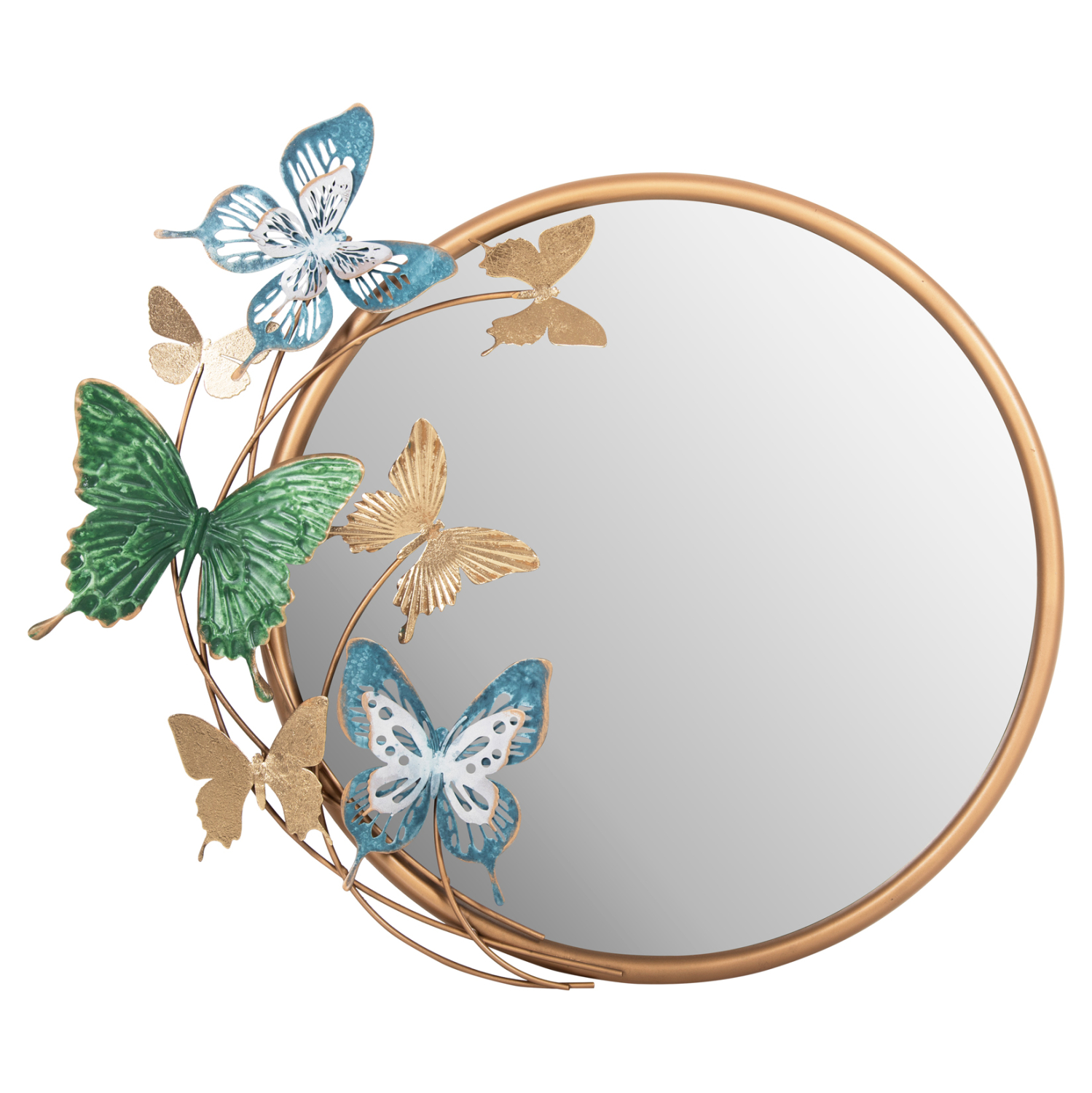 O καθρέπτης αυτός είναι πραγματικά ένα όμορφο κομμάτι στην διακόσμηση του σπιτιού σας! Πρόκειται για έναν στρογγυλό μεταλλικό καθρέπτη με ΧΡΥΣΟ πλαίσιο και φιγούρες πεταλούδων σε χρυσό, πράσινο, και μπλέ, πράγμα που τον καθιστά και διακοσμητικό τοίχου. Γενικά, ο καθρέπτης είναι ένα από τα αναγκαία αντικείμενα για ένα σπίτι, αλλά είναι ιδανικός και για ξενοδοχεία, Airbnb, ή χώρους εστίασης ως διακοσμητικό στοιχείο!