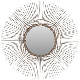 O καθρέπτης ΗΜ7732 είναι πραγματικά ένα εντυπωσιακό κομμάτι στην διακόσμηση του χώρου σας! Το design του είναι μοναδικό με την συμμετρική κυκλική διάταξη των sticks από κοκοφοίνικα, τα οποία στο κέντρο τους «φιλοξενούν» τον καθρέπτη. Τα ξύλα είναι στο φυσικό τους χρώμα και οι διαστάσεις όλης της κατασκευής είναι ικανοποιητικές.