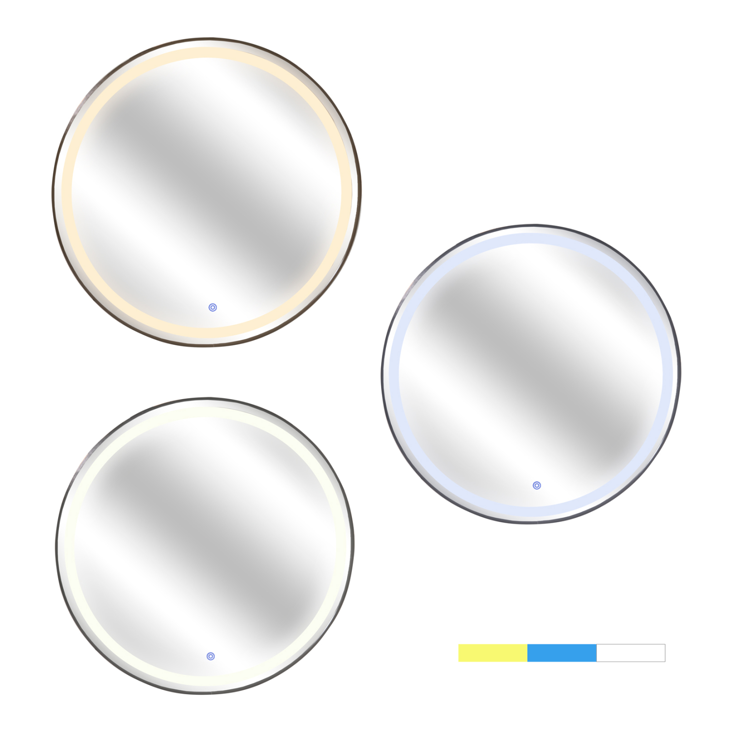 Ο ROUNDER είναι ένας στρογγυλός καθρέφτης τοίχου με ΜΑΥΡΟ σκελετό, κομψός και σε σχετικά μεγάλη διάσταση. Ωστόσο, αυτό που τον διαφοροποιεί σε σχέση με τους απλούς καθρέπτες είναι ότι διαθέτει φωτισμό LED ενσωματωμένο σε κυκλική διάταξη ακολουθώντας την «γραμμή» του πλαισίου. Ο φωτισμός ενεργοποιείται με ένα διακόπτη αφής στο εμπρός και κάτω μέρος του καθρέπτη, ενώ παράγει 3 διαφορετικά χρώματα φωτός. Ζεστό (κιτρινωπό), ελαφρύ μπλέ, και φυσικό λευκό, που ενεργοποιούνται πατώντας τον ίδιο διακόπτη αφής. Ένα χρήσιμο «εργαλείο» κυρίως για το μπάνιο αλλά και για οποιοδήποτε άλλο χώρο χρειάζεστε έναν καθρέπτη με φωτισμό!