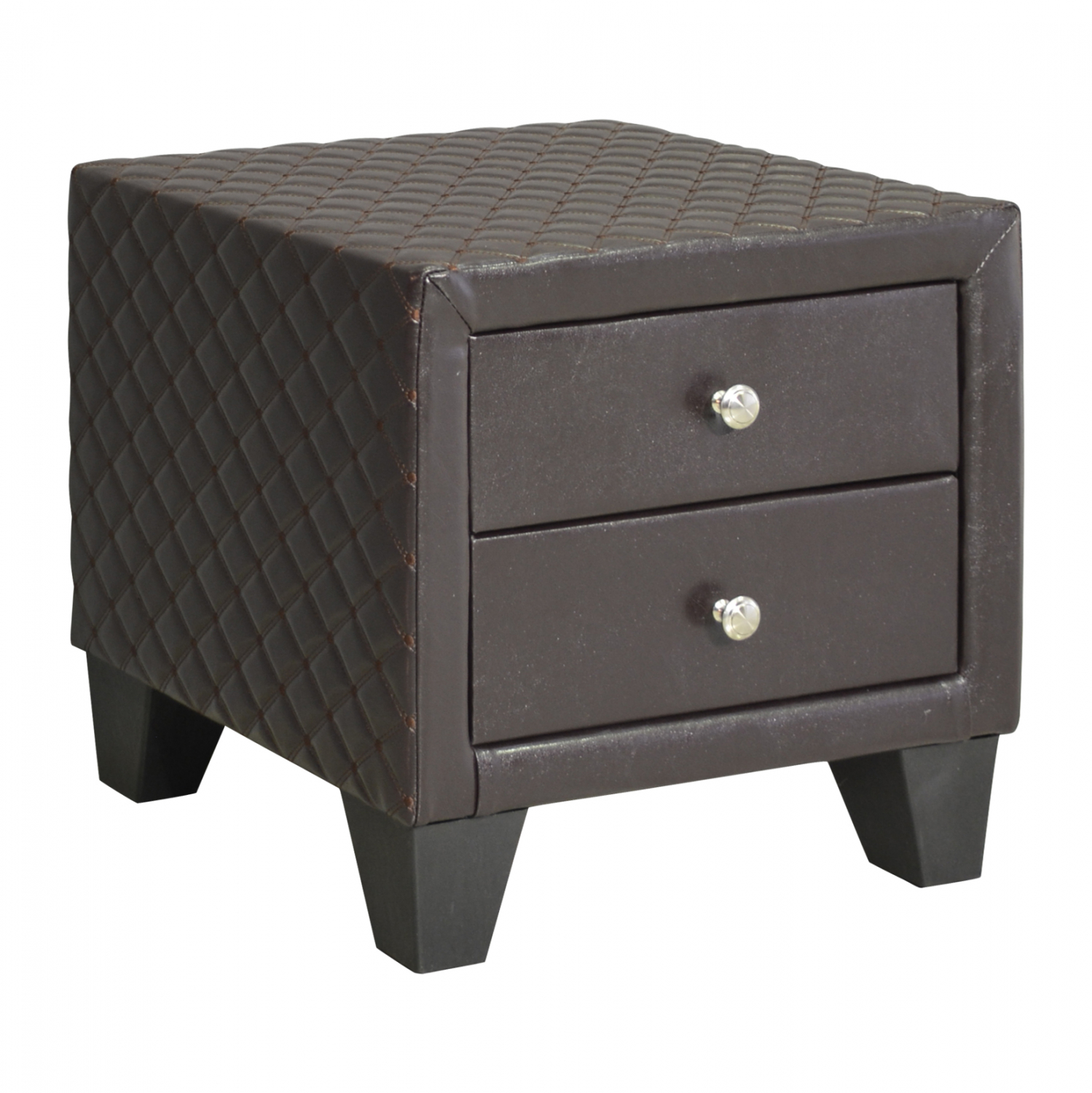 Κομοδίνο Elda επενδεδυμένο από τεχνόδερμα, σε καφέ απόχρωση.