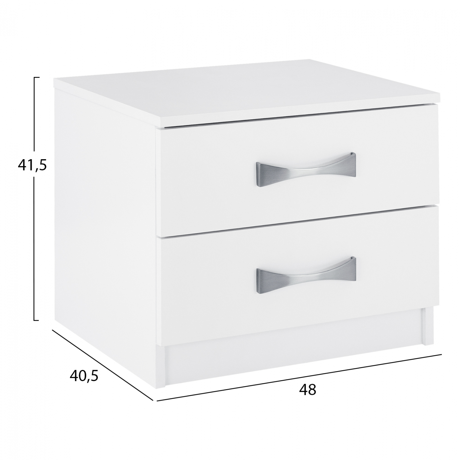 Το κομοδίνο έχει 2 συρτάρια αποθήκευσης τα οποία ανοίγουν με πόμολα χρωμίου.