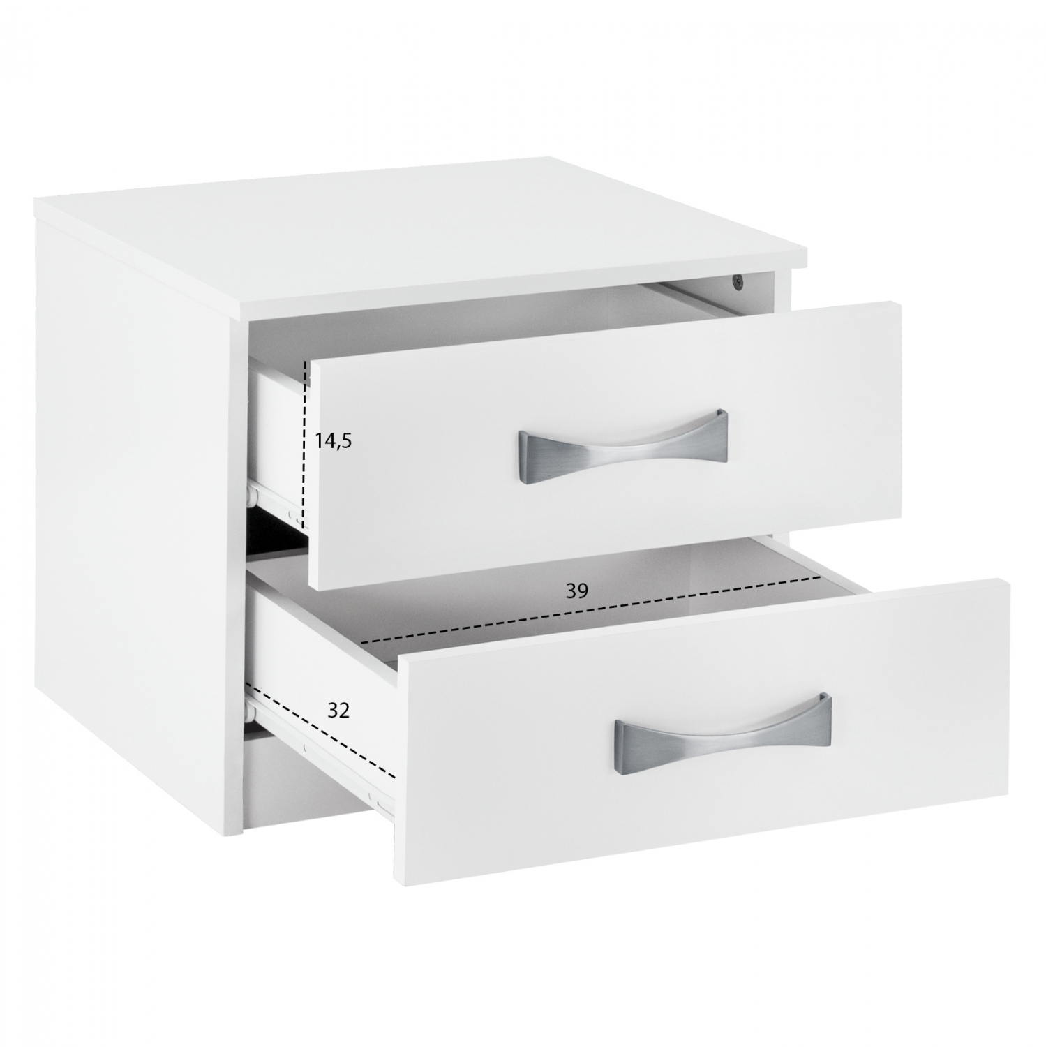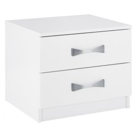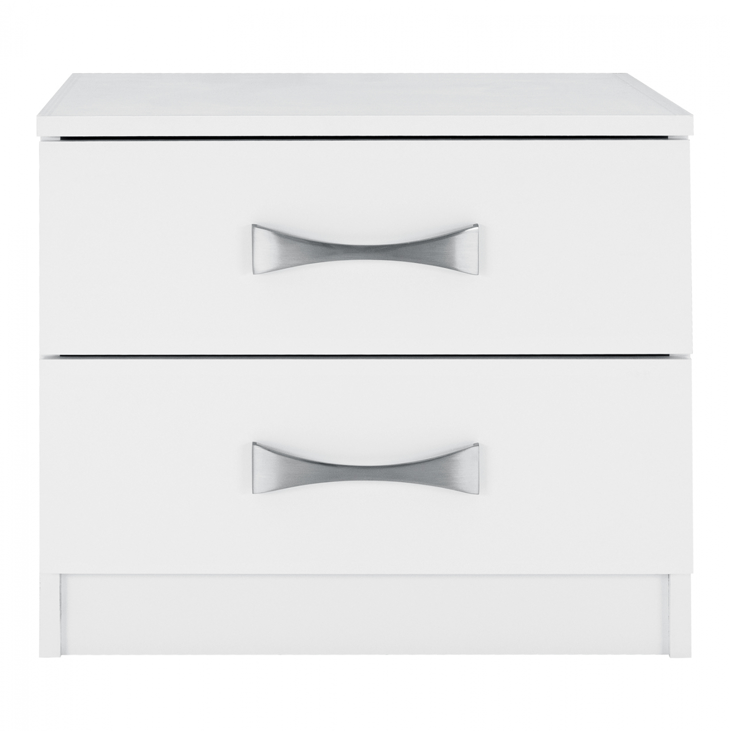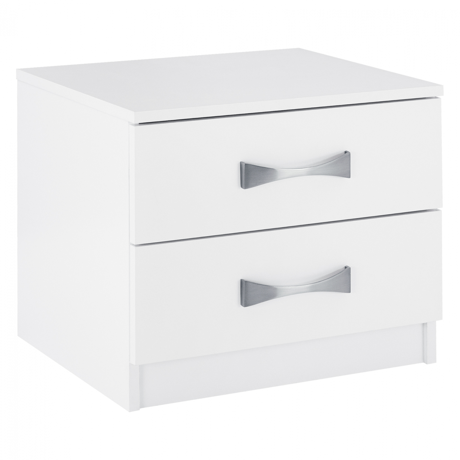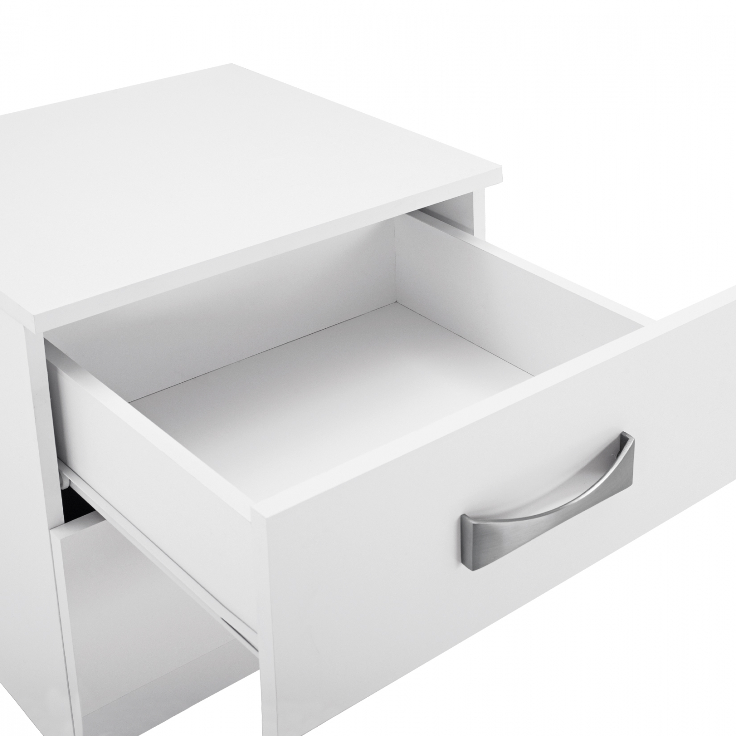 Κομοδίνο κρεβατοκάμαρας κατασκευασμένο από μελαμίνη, σε λευκό χρώμα.