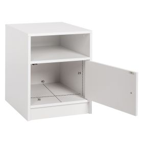 Το κομοδίνο MALORY είναι ένα πρακτικό και όμορφο έπιπλο που θα συνοδεύσει και θα συμπληρώσει με τον καλύτερο τρόπο τον εξοπλισμό του υπνοδωματίου σας. Είναι κατασκευασμένο από ποιοτική μελαμίνη σε ΛΕΥΚΟ χρώμα και διαθέτει ένα ντουλαπάκι με ασημένιο χερούλι κι έναν ανοιχτό χώρο σαν ράφι πάνω από το ντουλαπάκι. Οι διαστάσεις του το καθιστούν ιδανικό ακόμα και για μικρά δωμάτια, ενώ ενδείκνυται τόσο για το σπίτι, όσο και για επαγγελματική χρήση.