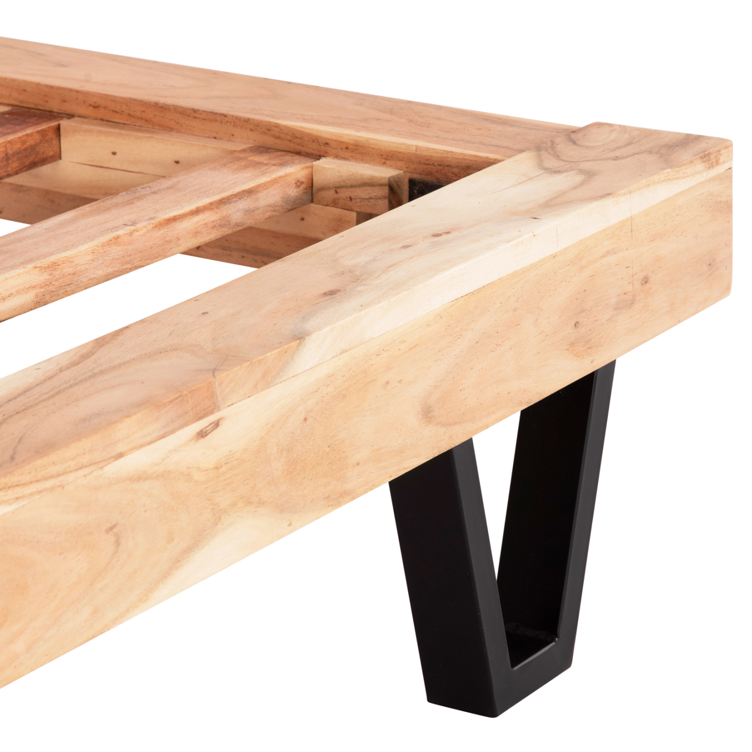 Ο σκελετός είναι κατασκευασμένος από φυσικό μασίφ ξύλο ΑΚΑΚΙΑΣ και κάθε ένα είναι μοναδικό λόγω της ανομοιομορφίας των κορμών των δένδρων. Όταν αναφερόμαστε σε μασίφ, εννοούμε τα ξύλα που κατασκευάζονται ολοκληρωτικά από τον κορμό δέντρου. Το μασίφ είναι η πιο ακριβή επιλογή σε είδος ξύλου αλλά ξεχωρίζει για την διαχρονική αισθητική του. Το ξύλο της ακακίας, τώρα, είναι από τα καλύτερα είδη ξύλου που κυκλοφορούν στην αγορά. Η μηχανική του αντοχή και οι μηχανικές του ιδιότητες προσεγγίζουν αυτές άλλων γνωστών ξύλων, όπως η οξιά, ο δρυς, η afzelia, το teak και άλλα.