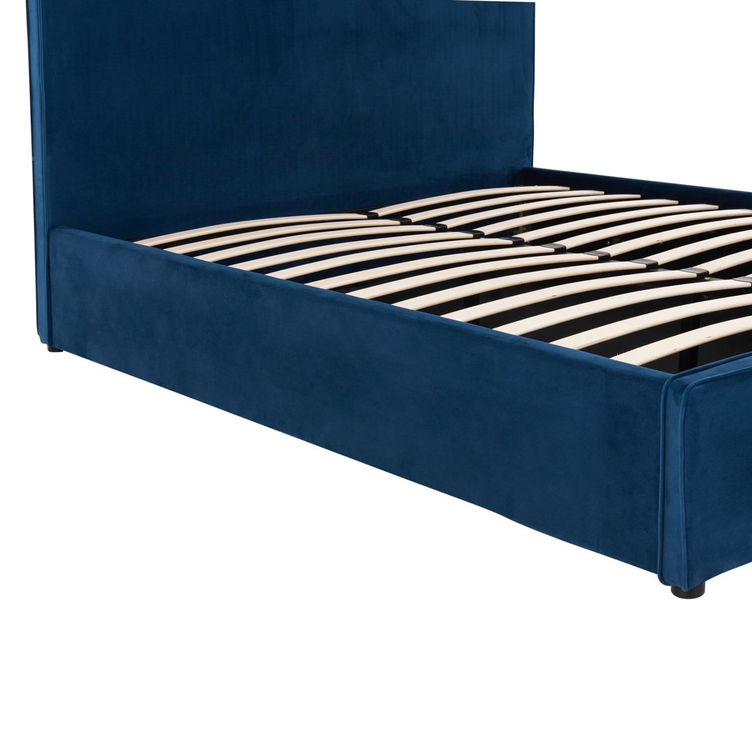 Με το κρεβάτι ΑLLIE μπορείτε να απολαμβάνετε κάθε στιγμή τον ύπνο σας. Σε διάσταση για στρώμα 160x200 εκ, είναι επαρκές για να χωρέσουν δύο άτομα. Έχει ψηλό κεφαλάρι με βελούδινη επένδυση σε ΜΠΛΕ χρώμα ενώ ένα ρέλι σε ίδιο χρώμα διατρέχει όλες τις άκρες του κρεβατιού. Το στρώμα «κάθεται» πάνω σε δύο σειρές από ανατομικές τάβλες, ακολουθώντας τον παραδοσιακό τρόπο κατασκευής κρεβατιού. Ωστόσο, το κύριο χαρακτηριστικό αυτού του κρεβατιού είναι ότι διαθέτει αποθηκευτικό χώρο κάτω από τις τάβλες του στρώματος που εφαρμόζουν σε έναν μεταλλικό μηχανισμό, ο οποίος ανασηκώνεται με έναν ιμάντα. Μια μοντέρνα και λιτή πρόταση που θα ανανεώσει το υπνοδωμάτιό σας.