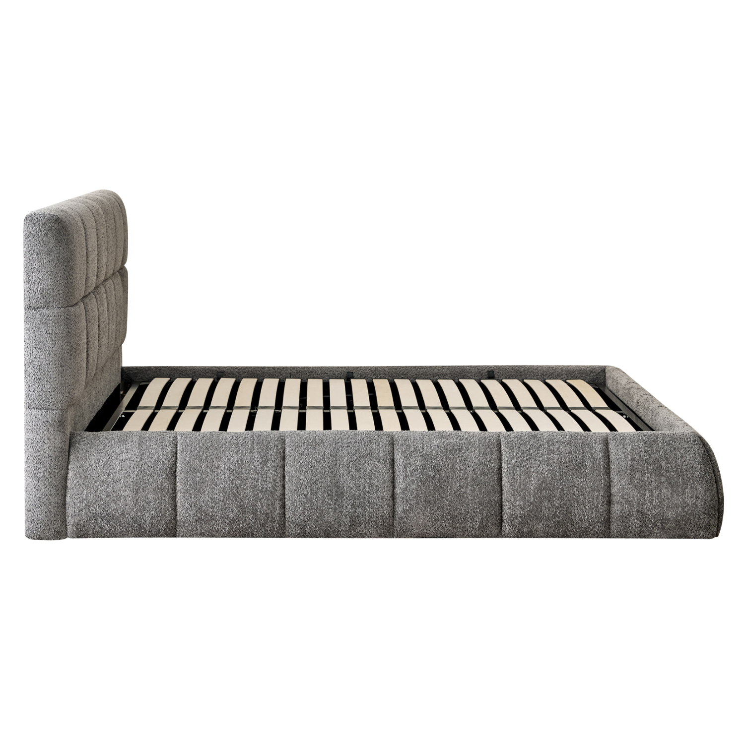 Το στρώμα στηρίζεται σε 20 σειρές εργονομικές τάβλες στήριξης, οι οποίες τοποθετούνται σε ένα μεταλλικό πλαίσιο που ανασηκώνεται με μηχανισμό ασφαλείας, προσφέροντας έναν μεγάλο αποθηκευτικό χώρο επενδυμένο επίσης με ύφασμα. Μια μοντέρνα πρόταση που θα ανανεώσει το υπνοδωμάτιό σας.