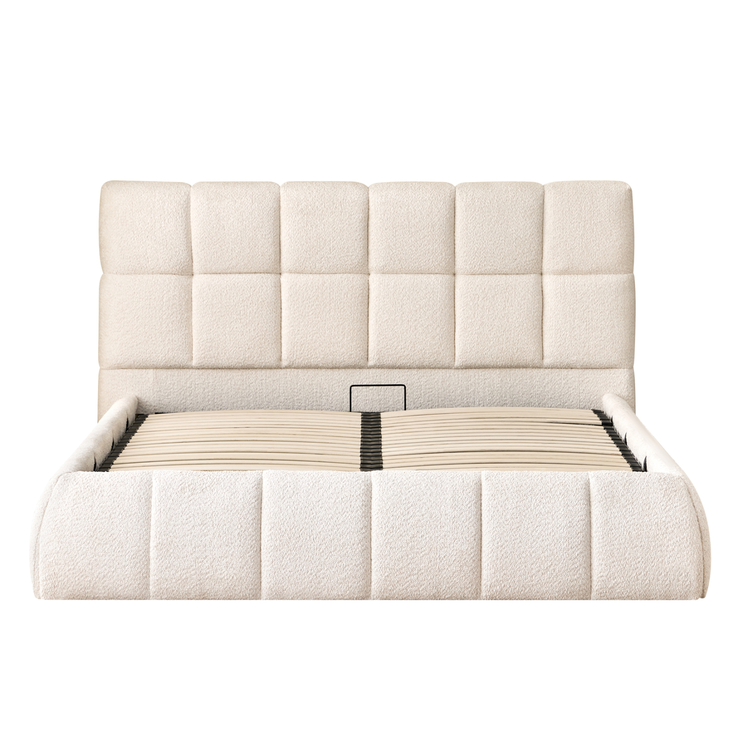 Το στρώμα στηρίζεται σε 20 σειρές εργονομικές τάβλες στήριξης, οι οποίες τοποθετούνται σε ένα μεταλλικό πλαίσιο που ανασηκώνεται με μηχανισμό ασφαλείας, προσφέροντας έναν μεγάλο αποθηκευτικό χώρο επενδυμένο επίσης με ύφασμα. Μια μοντέρνα πρόταση που θα ανανεώσει το υπνοδωμάτιό σας.