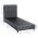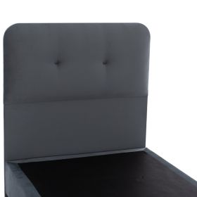 Το κρεβάτι DOLORES έχει ψηλό κεφαλάρι, και έχει διακόσμηση με 2 μόνο τρουκς (κουμπάκια), ενώ και όλη η επένδυση του κρεβατιού είναι από υπέροχο βελούδινο ύφασμα. Το ΓΚΡΙ χρώμα σε όλο το κρεβάτι είναι ουδέτερο και μπορεί να συνδυαστεί με πληθώρα διακοσμητικών μοτίβων. Όμως, το κύριο χαρακτηριστικό αυτού του κρεβατιού είναι ότι δεν ακολουθεί την κλασική κατασκευή με τις τάβλες του σομιέ για την στήριξη του στρώματος, αλλά αντίθετα αποτελείται από μια συνεχόμενη επιφάνεια πάνω στην οποία τοποθετείται το στρώμα! Σε διαστάσεις μονού στρώματος 90x200 εκ.