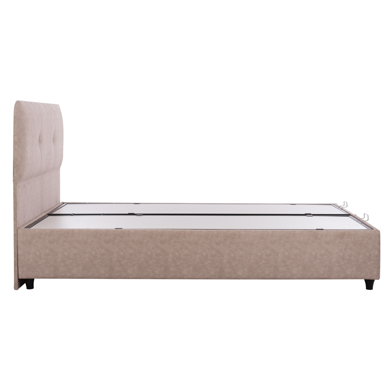 Όμως, το κύριο χαρακτηριστικό αυτού του κρεβατιού είναι ότι δεν ακολουθεί την κλασική κατασκευή με τις τάβλες του σομιέ για την στήριξη του στρώματος, αλλά αντίθετα αποτελείται από μια συνεχόμενη επιφάνεια (2 μοριοσανίδες) πάνω στην οποία τοποθετείται το στρώμα! Επιπλέον, η κάθε επιφάνεια από μοριοσανίδα ανασηκώνεται με μεταλλικό μηχανισμό ασφαλείας με 4 αμορτισέρ και μεταλλικές λαβές προσφέροντας έναν μεγάλο αποθηκευτικό χώρο. Σε διαστάσεις στρώματος 160x200 εκ. θα χωρέσει κάθε σας όνειρο!