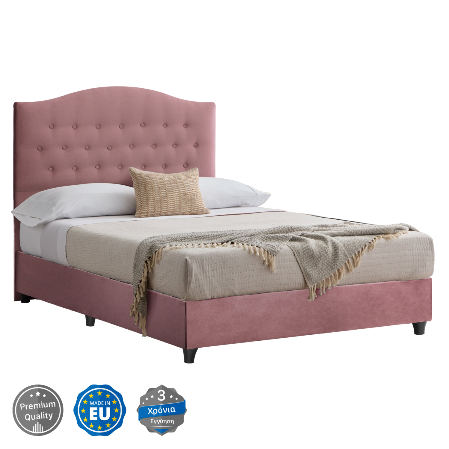 Η επένδυση έχει γίνει εξολοκλήρου από βελούδινο ύφασμα, χαρίζοντας ελκυστική όψη και μια εκλεπτυσμένη γοητεία στην διακόσμηση του υπνοδωματίου. Πρόκειται για ένα ύφασμα απαλό, χαλαρό, απολαυστικό και φινετσάτο που είναι αδύνατον να του αντισταθεί κάποιος. Το θετικό είναι ότι μπορεί να εναρμονιστεί εύκολα με κάθε είδος διακόσμησης, προσδίδοντας στο χώρο φινέτσα και καλαισθησία.