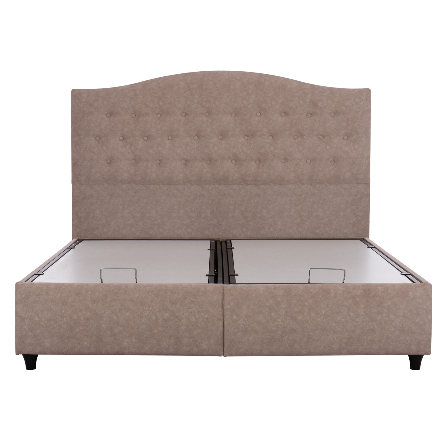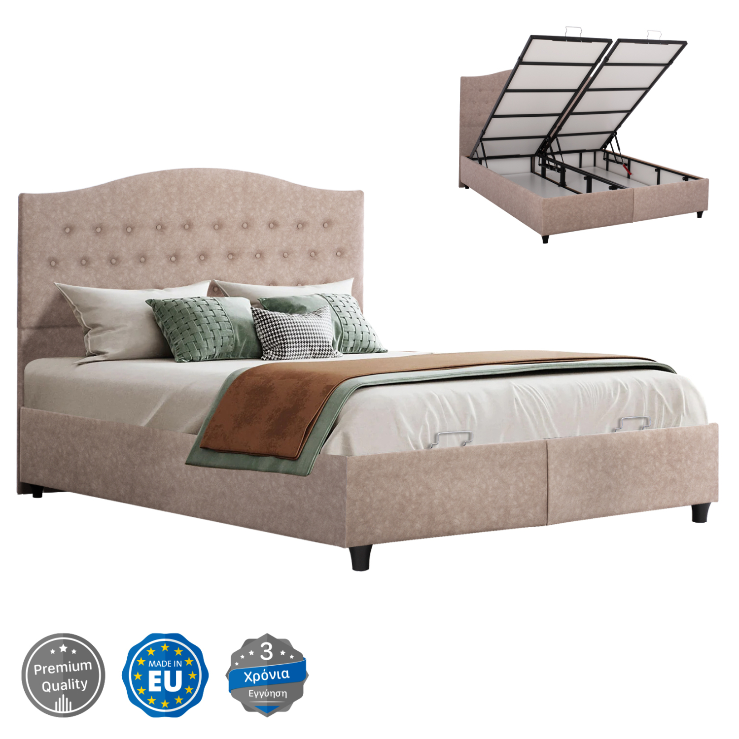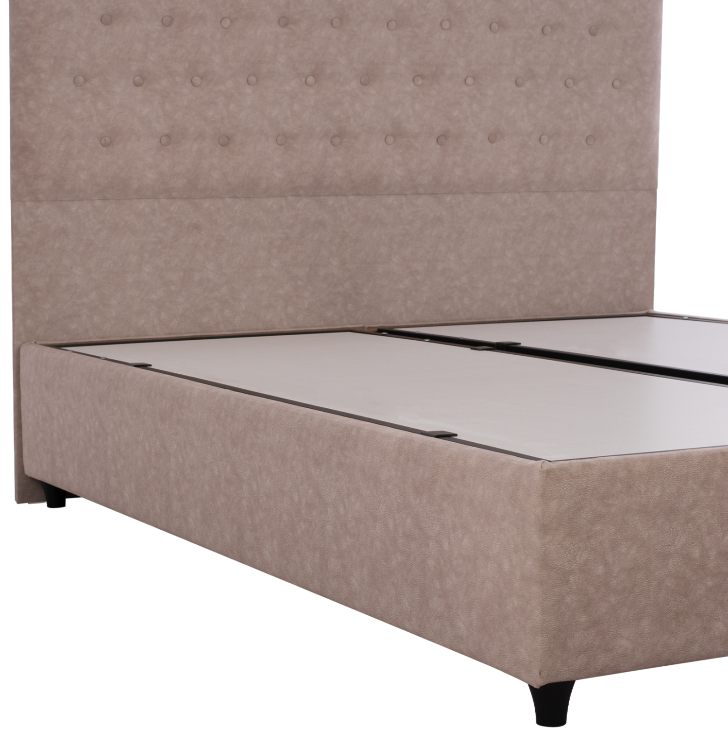 Η επένδυση έχει γίνει εξολοκλήρου από εξαιρετικής ποιότητας ύφασμα τύπου NUBUCK, χαρίζοντας ελκυστική όψη και μια εκλεπτυσμένη γοητεία στην διακόσμηση του υπνοδωματίου.