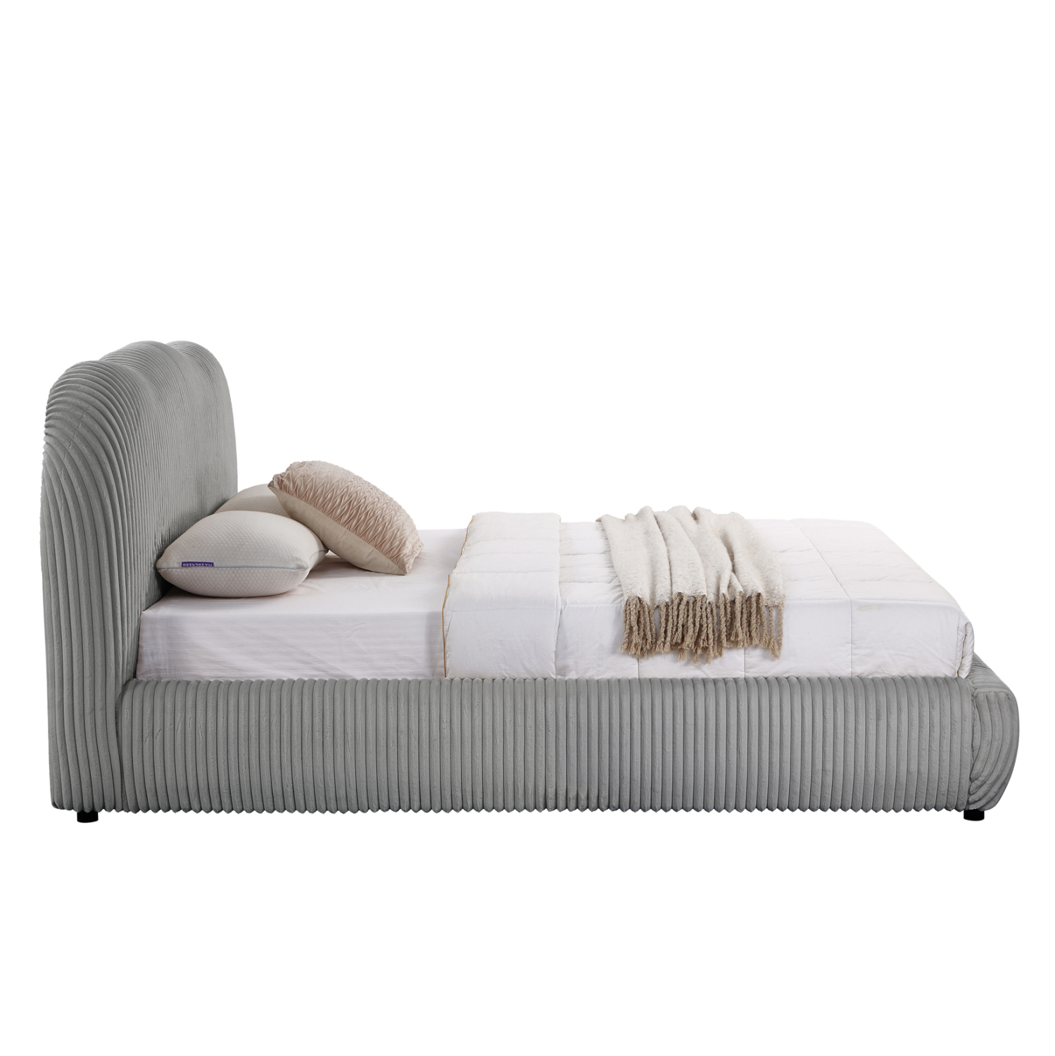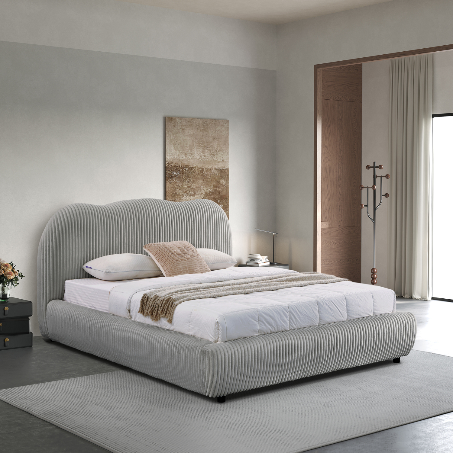 Το διπλό κρεβάτι KALLY για στρώμα 160x200εκ είναι νέα προσθήκη στην γκάμα μας. Ξεχωρίζει για την όμορφη επένδυση με ύφασμα συνθετικής γούνας (feaux fur) με κάθετες ρίγες σε ουδέτερο ΓΚΡΙ χρώμα.