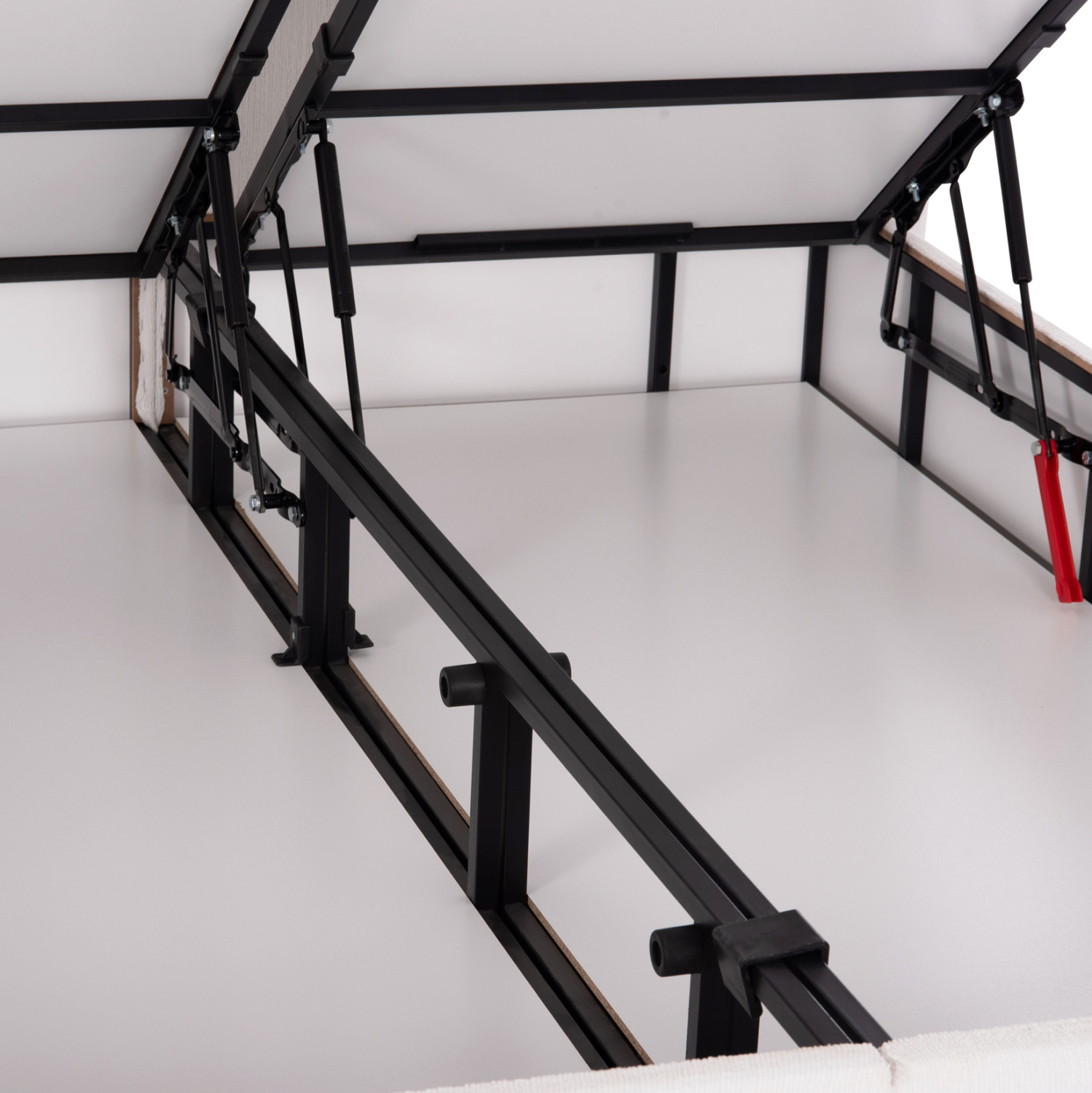 Ο σκελετός του κρεβατιού είναι ξύλινος, πράγμα που καθιστά το κρεβάτι εξαιρετικά στιβαρό και ανθεκτικό, χάρη και στην ενισχυμένη κατασκευή του. Ο μηχανισμός αποθήκευσης είναι μεταλλικός για αντοχή στο βάρος και στον χρόνο.