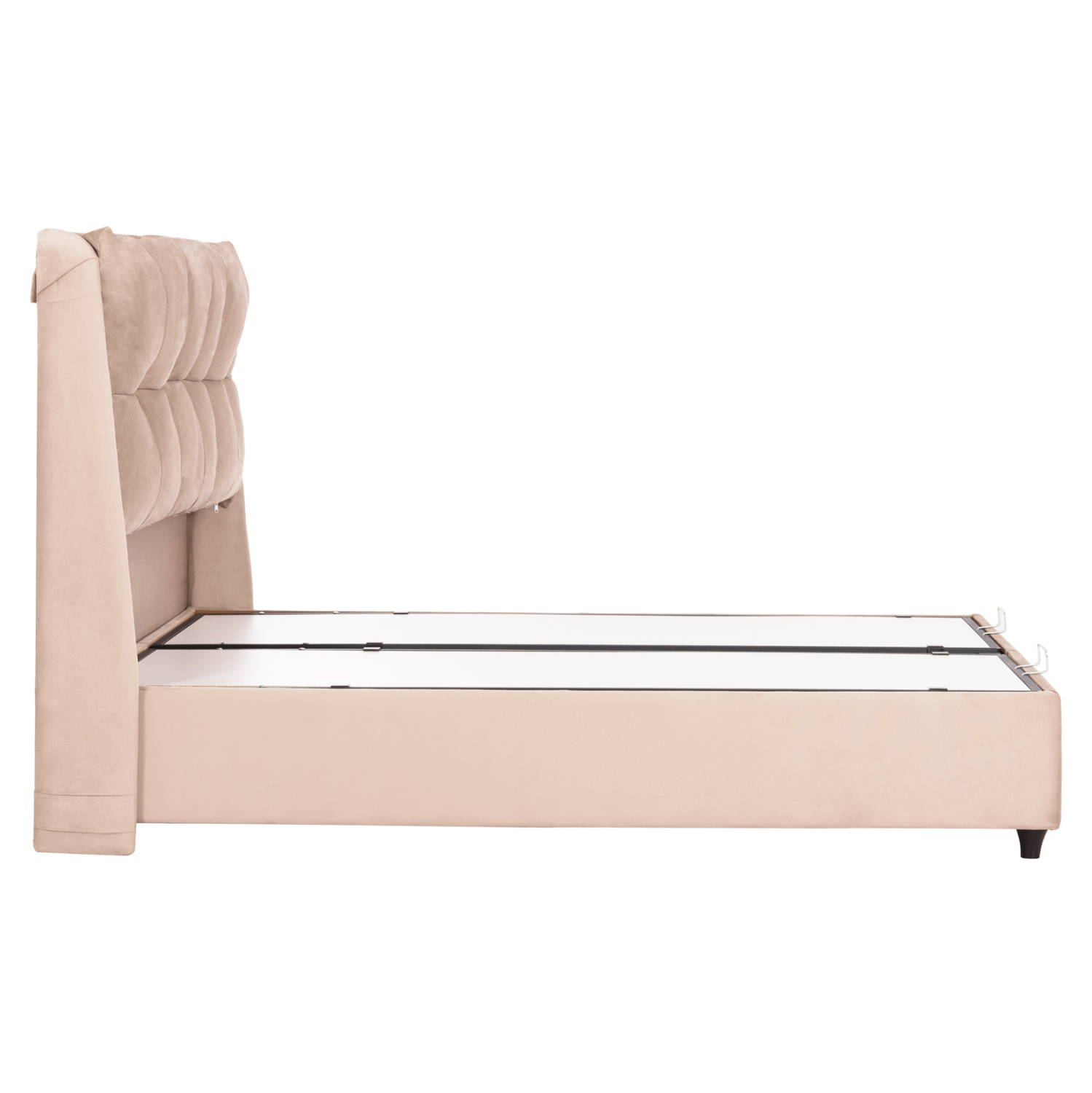 Ο σκελετός του κρεβατιού είναι ξύλινος, πράγμα που καθιστά το κρεβάτι εξαιρετικά στιβαρό και ανθεκτικό, χάρη και στην ενισχυμένη κατασκευή του. Ο μηχανισμός αποθήκευσης είναι μεταλλικός για αντοχή στο βάρος και στον χρόνο.