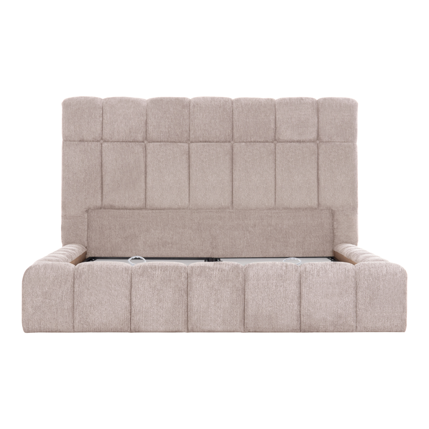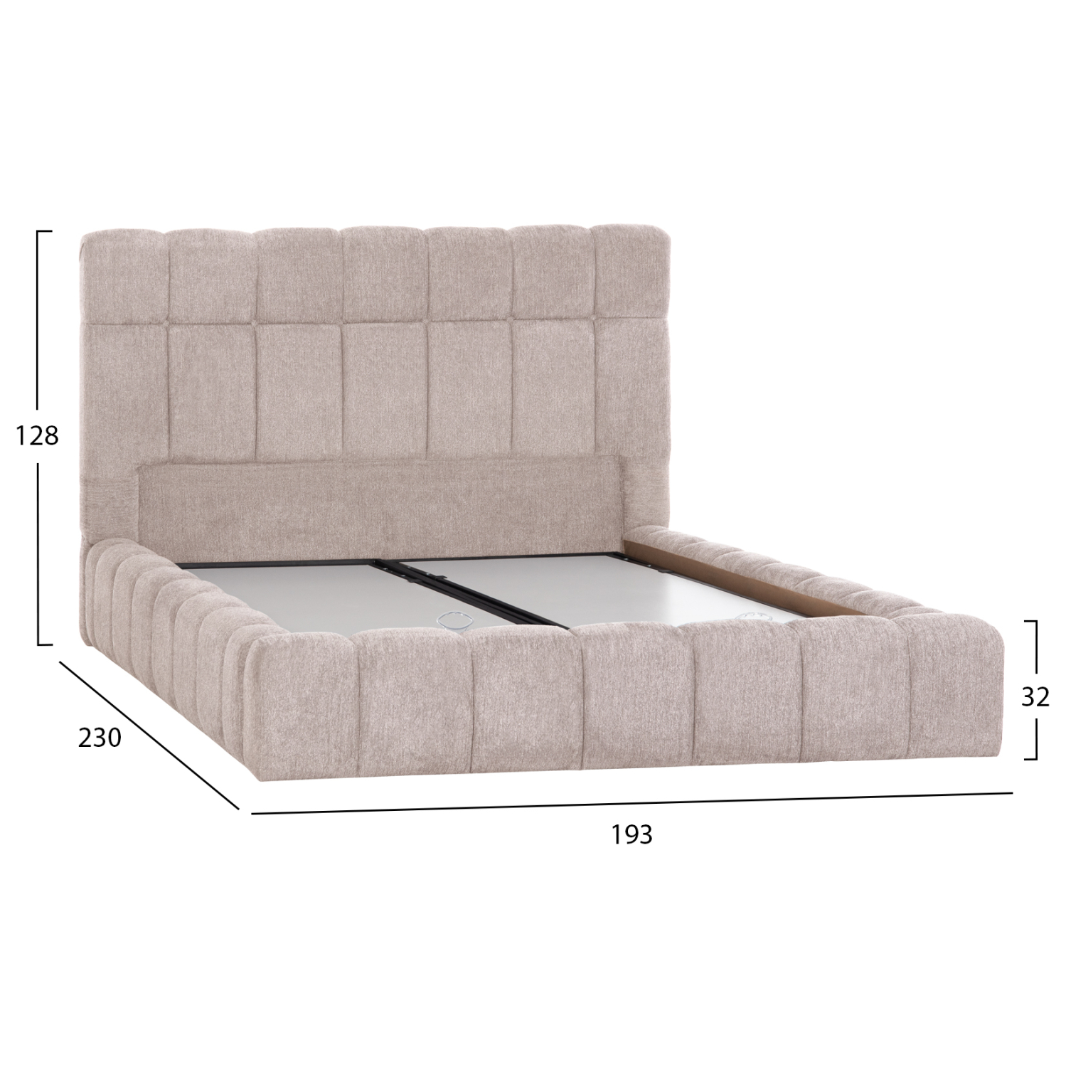 Το RAMON είναι ένα κρεβάτι που θα αγαπήσετε με την πρώτη ματιά! Το κεφαλάρι είναι ψηλό με τεχνοτροπία καπιτονέ από «ζεστό» και εντυπωσιακό ύφασμα TEDDY σε ΜΠΕΖ χρώμα. Τα πλαϊνά του κρεβατιού αλλά και το ποδαρικό είναι ίδιας αισθητικής με το κεφαλάρι και «αγκαλιάζουν» το στρώμα! Όμως, το κύριο χαρακτηριστικό αυτού του κρεβατιού είναι ότι δεν ακολουθεί την κλασική κατασκευή με τις τάβλες του σομιέ για την στήριξη του στρώματος, αλλά αντίθετα αποτελείται από μια συνεχόμενη επιφάνεια (2 μοριοσανίδες), πάνω στις οποίες τοποθετείται το στρώμα! Επιπλέον, η κάθε επιφάνεια από μοριοσανίδα ανασηκώνεται με μεταλλικό μηχανισμό ασφαλείας με 4 αμορτισέρ και διαφανείς πλαστικές λαβές προσφέροντας έναν μεγάλο αποθηκευτικό χώρο. Σε διπλή διάσταση στρώματος 160x200 εκ. θα χωρέσει κάθε σας όνειρο!
