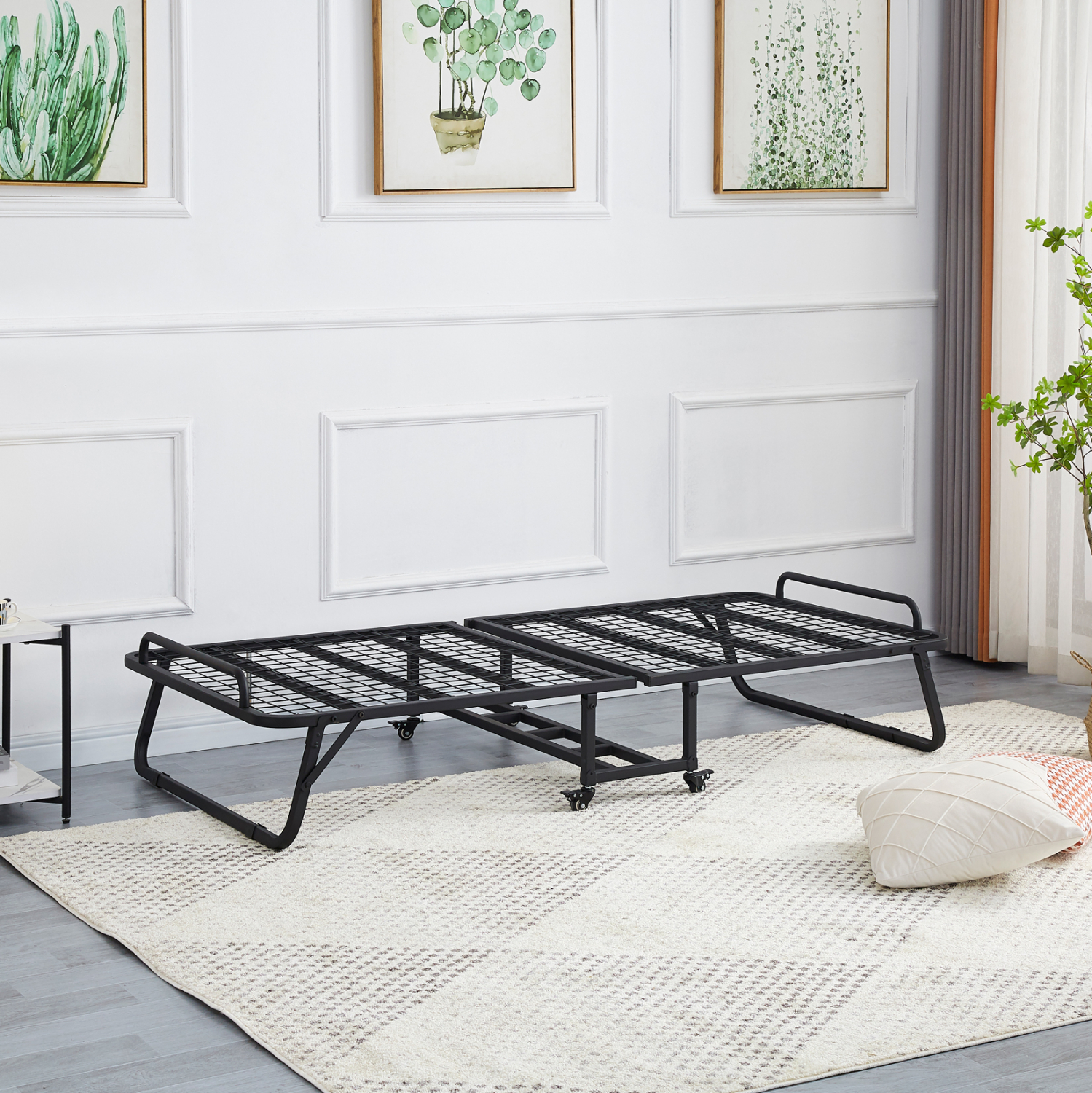 Το NETTI είναι ένα πρακτικότατο μεταλλικό αναδιπλούμενο κρεβάτι (ράντζο) σε ΜΑΥΡΟ χρώμα, που θα σας λύσει τα χέρια. Μπορεί να «διπλωθεί» και να μεταφερθεί ή να αποθηκευτεί εύκολα, προσφέροντας μια ποιοτική λύση όπου χρειαστεί.