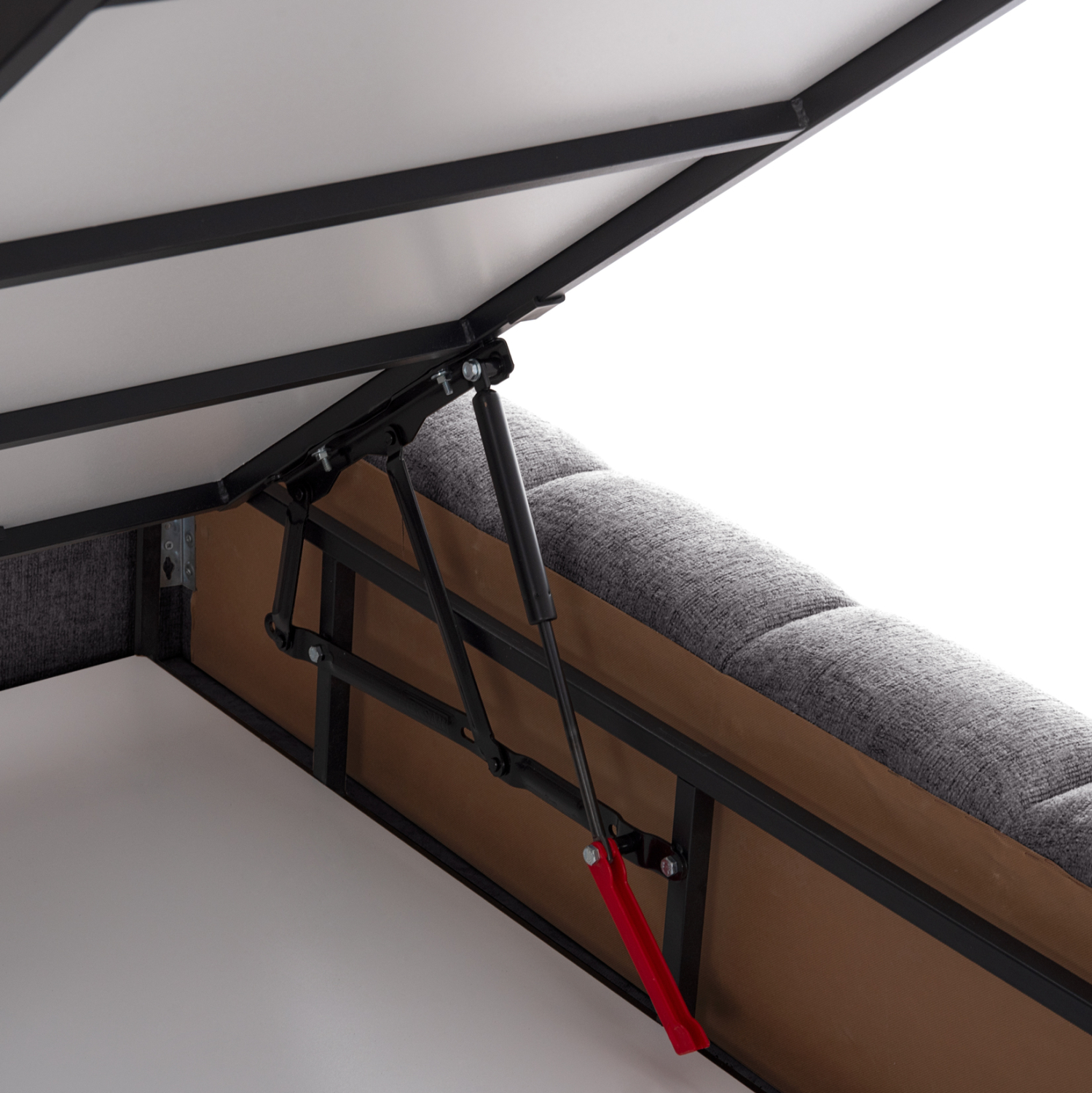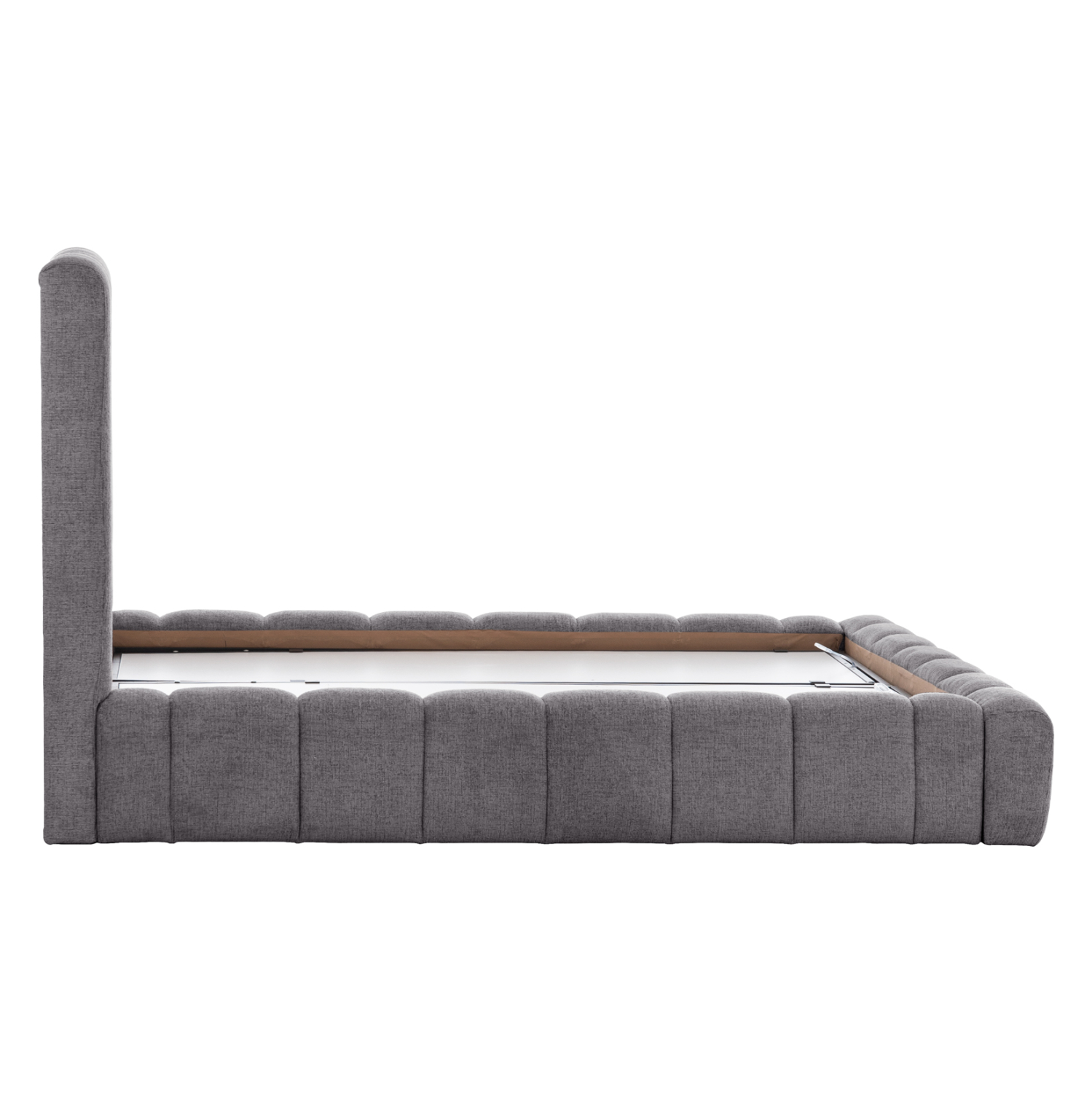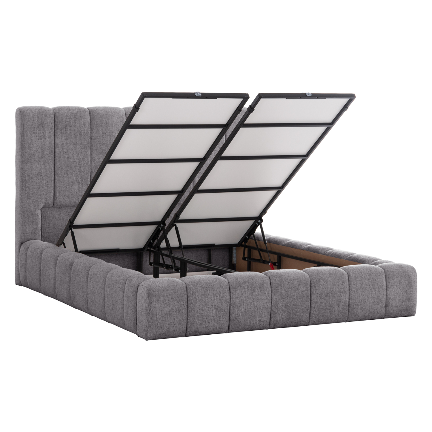 Το REMO είναι ένα κρεβάτι που θα αγαπήσετε με την πρώτη ματιά! Το κεφαλάρι είναι ψηλό με τεχνοτροπία καπιτονέ με κάθετες ραφές από «ζεστό» και εντυπωσιακό ύφασμα TEDDY σε ΓΚΡΙ χρώμα. Τα πλαϊνά του κρεβατιού αλλά και το ποδαρικό είναι ίδιας αισθητικής με το κεφαλάρι και «αγκαλιάζουν» το στρώμα! Όμως, το κύριο χαρακτηριστικό αυτού του κρεβατιού είναι ότι δεν ακολουθεί την κλασική κατασκευή με τις τάβλες του σομιέ για την στήριξη του στρώματος, αλλά αντίθετα αποτελείται από μια συνεχόμενη επιφάνεια (2 μοριοσανίδες), πάνω στις οποίες τοποθετείται το στρώμα! Επιπλέον, η κάθε επιφάνεια από μοριοσανίδα ανασηκώνεται με μεταλλικό μηχανισμό ασφαλείας με 4 αμορτισέρ και διαφανείς πλαστικές λαβές προσφέροντας έναν μεγάλο αποθηκευτικό χώρο. Σε διπλή διάσταση στρώματος 160x200 εκ. θα χωρέσει κάθε σας όνειρο!