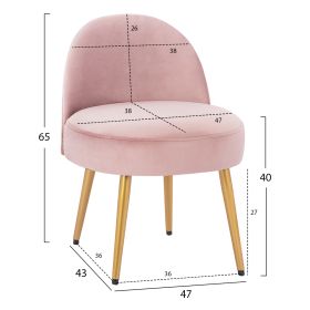 Σκαμπό με πλάτη YASMINE από βελούδο σε απόχρωση σάπιου μήλου με μεταλλικά χρυσά πόδια.