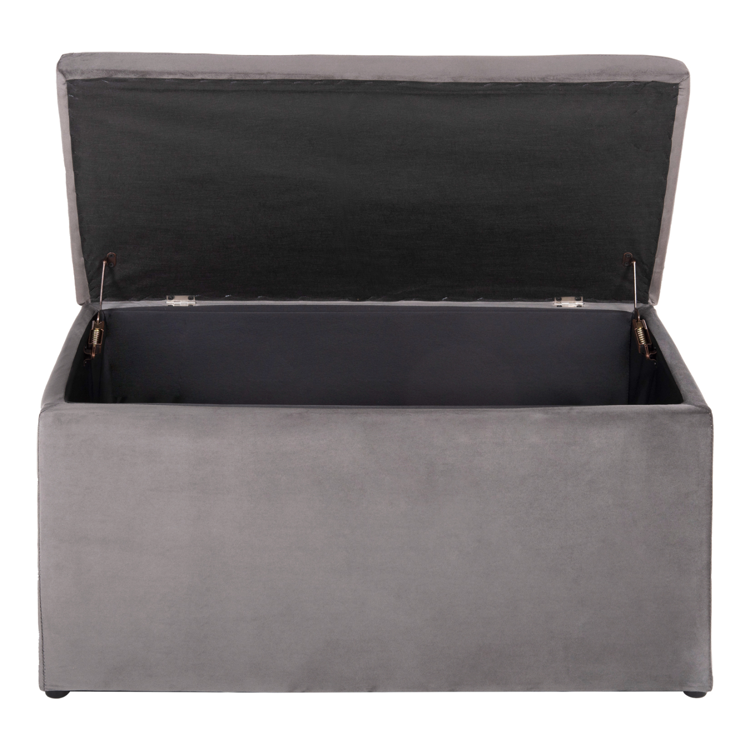 Το σκαμπό-μπαούλο PUNK είναι ένα πανέμορφο έπιπλο σε μακρόστενο σχήμα. Είναι όμορφο και πρακτικό και θα δώσει μια ζεστή αίσθηση στον χώρο σας. Μπορεί να τοποθετηθεί στο καθιστικό, στο χώρο εισόδου ή στο υπνοδωμάτιό σας. Η ιδιαιτερότητά του είναι ότι κάτω από το κάθισμα υπάρχει αποθηκευτικός χώρος. Ανασηκώνετε το κάθισμα με τους μεταλλικούς μεντεσέδες που κρατούν μάλιστα το κάθισμα ανασηκωμένο, και αποθηκεύετε οτιδήποτε θέλετε. Το μακρόστενο κάθισμα του σκαμπό αυτού είναι επενδυμένο με τεχνοτροπία καπιτονέ. Η επένδυση έχει γίνει με βελούδινο ύφασμα σε ΓΚΡΙ χρώμα.