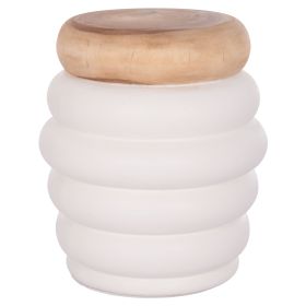 Το σκαμπό PUFFAT είναι κυλινδρικό με όμορφο σχέδιο δακτυλίων και επιφάνεια από ποιοτικό ξύλο teak. Είναι κατασκευασμένο εξολοκλήρου από Fiber Cement σε ΛΕΥΚΟ χρώμα και αποτελεί ιδανικό συμπλήρωμα τόσο για το σπίτι, όσο και για επαγγελματικούς χώρους, όπως ξενοδοχεία, AirBnB, κτλ.