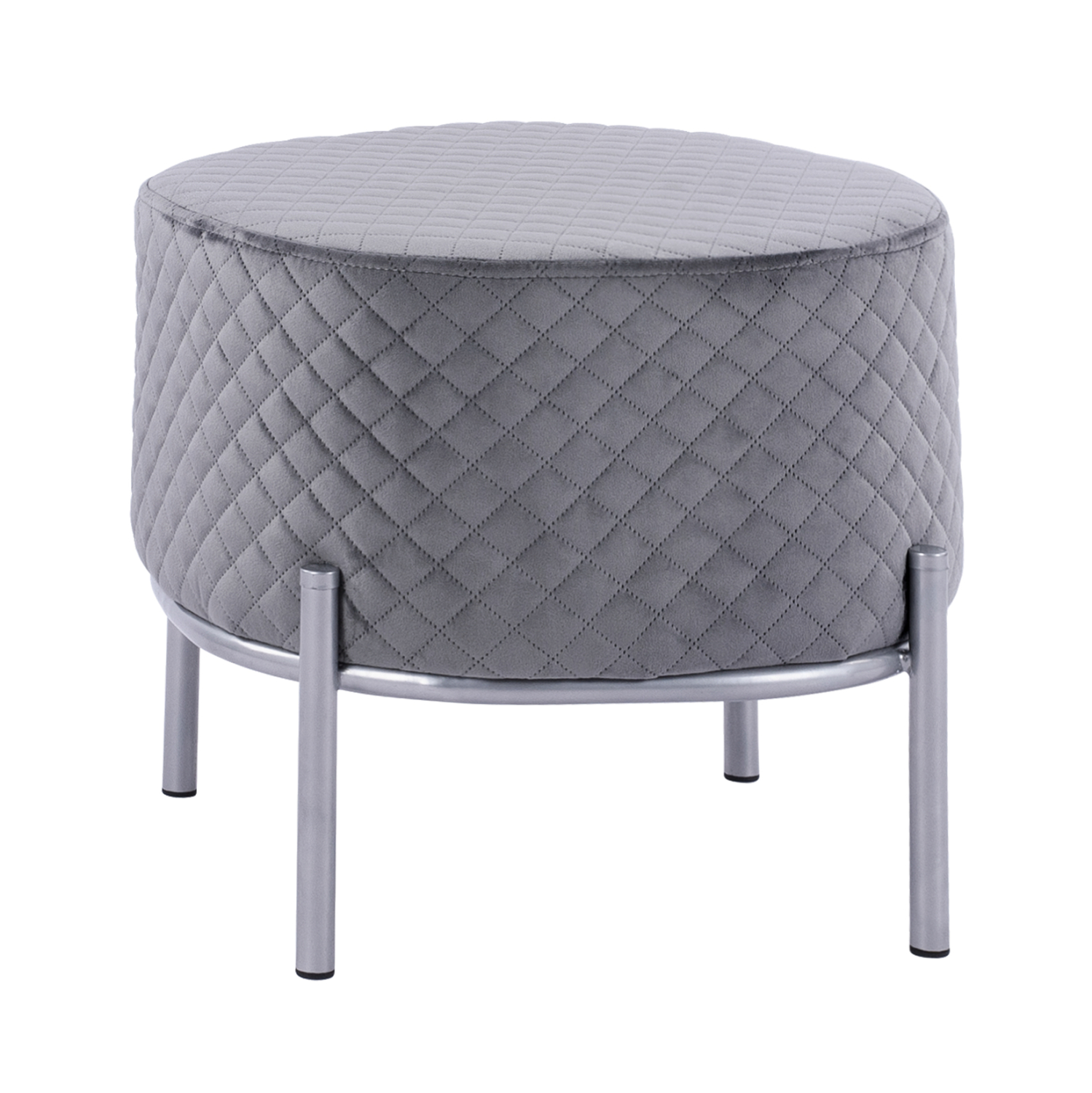 Σκαμπό SINTA από βελούδο σε γκρι απόχρωση, με μεταλλική βάση σε ασημί χρώμα.