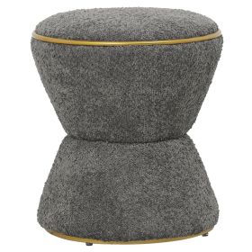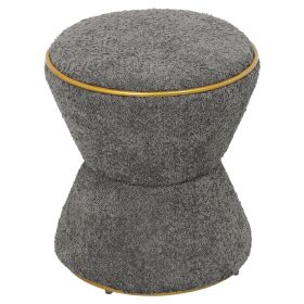 Σκαμπό κυλινδρικό LINNER επενδυμένο με ΓΚΡΙ μπουκλέ ζεστό ύφασμα και ΧΡΥΣΗ μεταλλική λεπτομέρεια («δαχτυλίδι») στο κάθισμα και στην βάση.