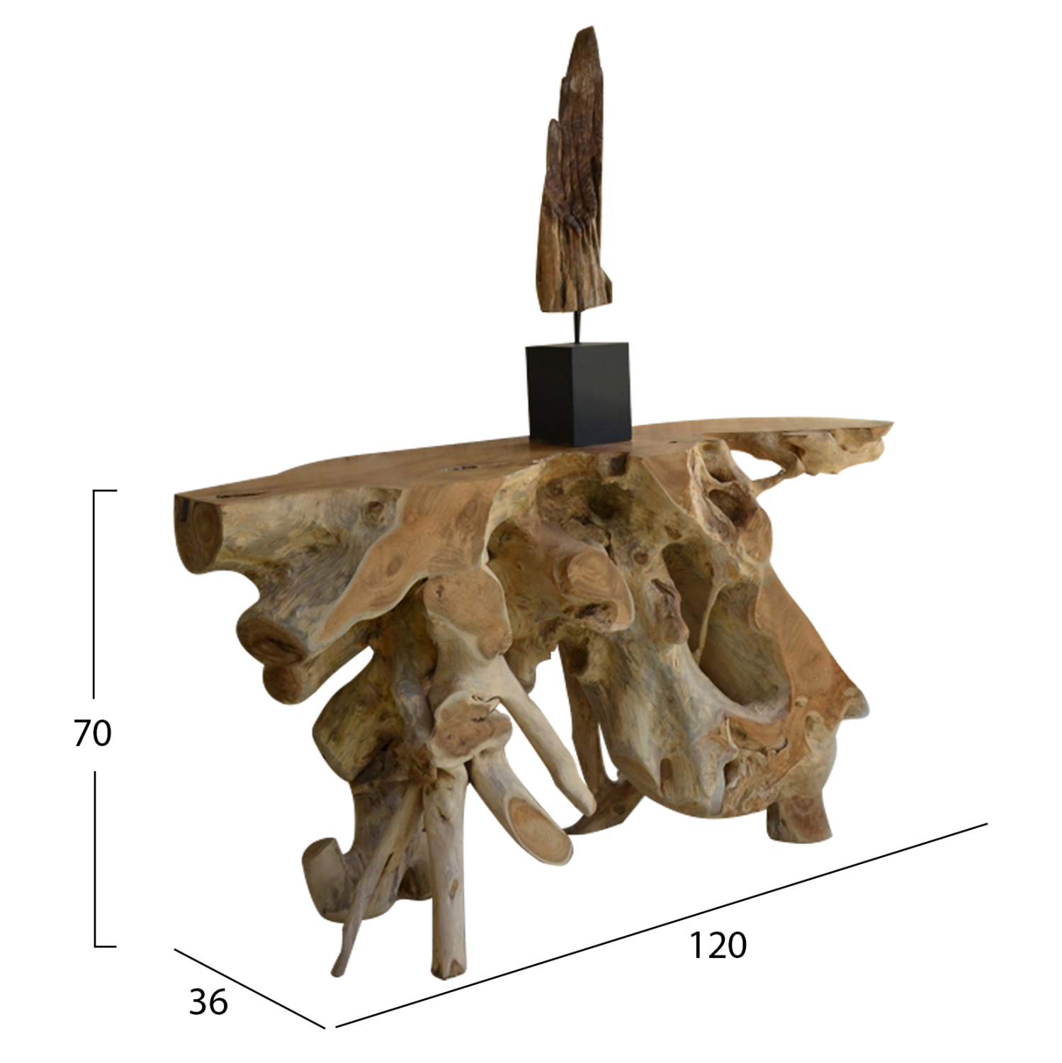 Η κονσόλα είναι κατασκευασμένη από την μασίφ ρίζα του δέντρου ΤΕΑΚ. Το μασίφ συνιστά ένα είδος ξύλου, καθαρό και ατόφιο, που παραδοσιακά χρησιμοποιούν οι μαραγκοί για την κατασκευή επίπλων. Το μασίφ είναι η πιο ακριβή επιλογή σε είδος ξύλου αλλά ξεχωρίζει για την διαχρονική αισθητική του. Το αποτέλεσμα που προσφέρει στον κάτοχό του είναι πραγματικά μοναδικό.
