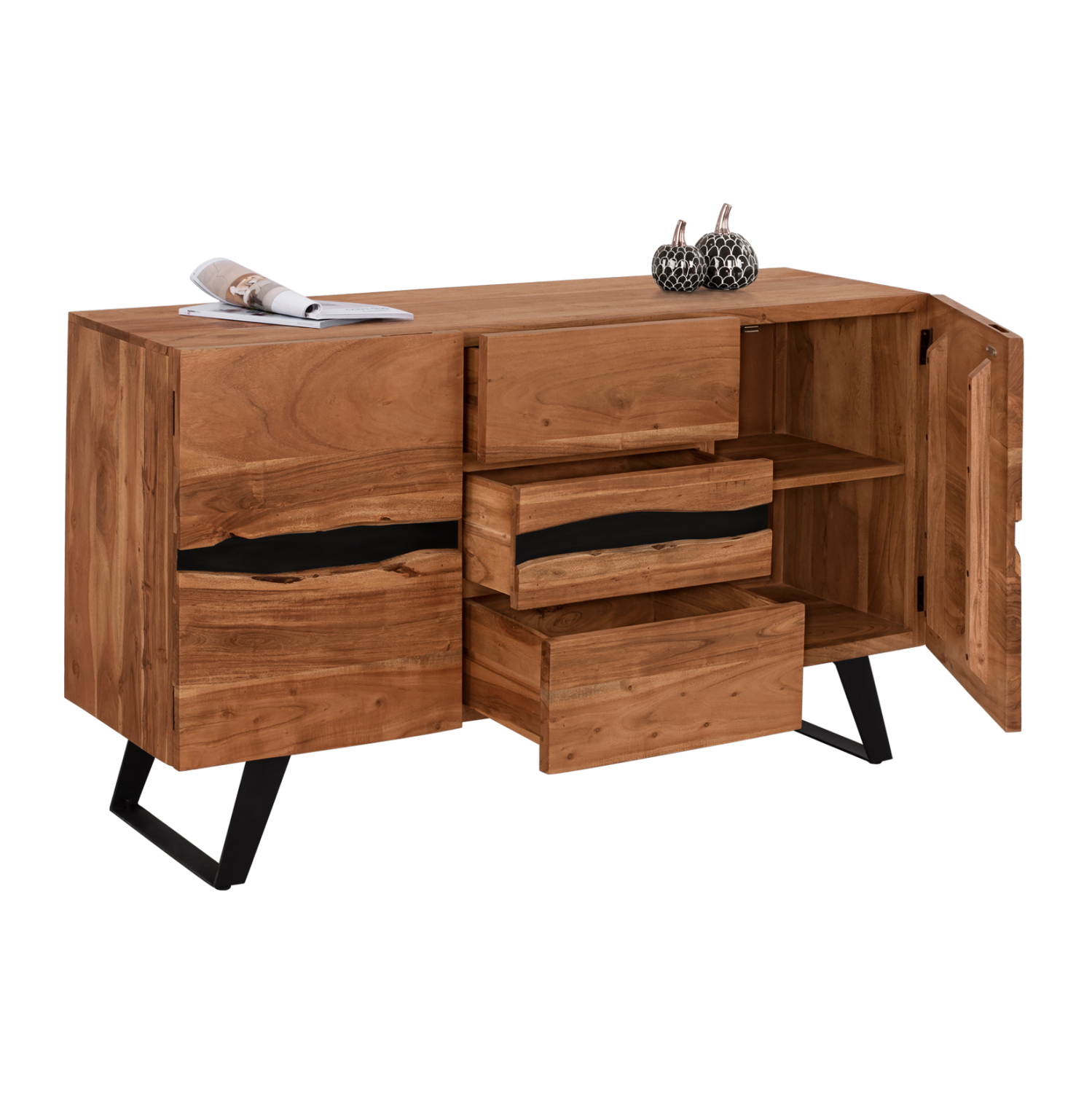 Μπουφές από μασίφ ξύλο Ακακίας σε φυσική απόχρωση και μεταλλικά πόδια σε μαύρο χρώμα.